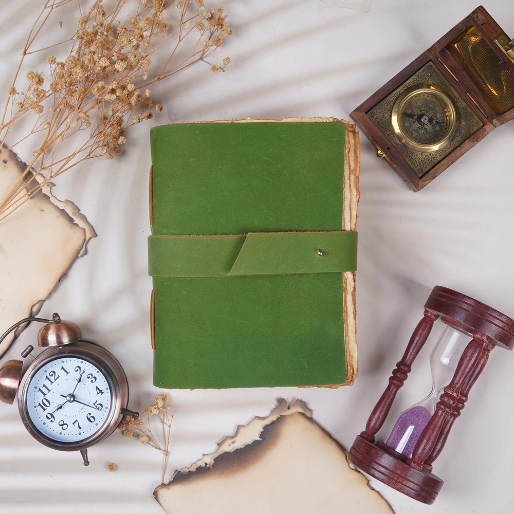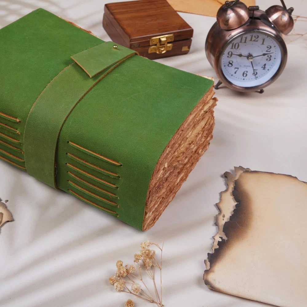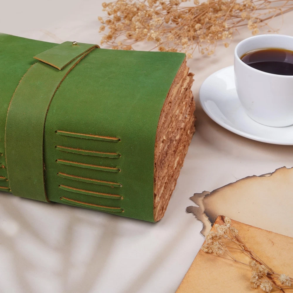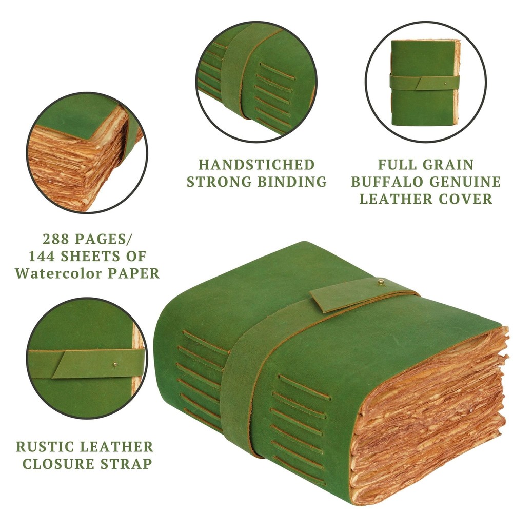Vintage Leather Bound Journal | Green 8"x6" (A5)| 288 Pages - Blank Cotton Antique Watercolor Paper | Multi-Purpose Diary for Writing, Spell Book, Travel, Art, and Scrapbooking | Handmade by Leather ✓ Free 60 Day Returns ✓ Free Express Shipping Description: Features: LEATHER COVER: This Vintage Journal is Made from Genuine Buffalo Leather which is naturally tanned with oils and is chrome free. As these Daily Journals are made with genuine Cruelty free leather naturally tanned with oils, salt, and scents so each vary in look and shade producing a unique Diary. MULTIPURPOSE JOURNAL : This leather Sketchbook comes with No Bleed Scrapbook Paper. The Mixed Media Sketchbook is Suitable for Watercolor, Acrylic Colors, Pastel Color and all Dry & Wet Mediums. Use it like Sketch Pad, Watercolor Sketchbook etc. TIMELESS GIFT: This Book Of Shadows Journal a lovely treat for your loved ones for an anniversary, birthday gift for men and women, Christmas gift, Harry potter gift, The lord of the rings gift, Game of thrones gift, thank you gift or graduation present or starting a new venture. Product Details: Brand: LEATHER VILLAGE Color: Green Theme: Book Sheet Size: A5 Pages: 288 Pages Cover Material: Leather Style: Vintage Leather Bound Journal Ruling Type: Plain Special Feature: Soft cover Number of Items: 1 Manufacturer: LV Brand: LEATHER VILLAGE Item Weight: 1.49 pounds Product Dimensions: 6 x 8 x 2 inches Item model number: LV-OP-001 Color: Green Cover Material: Leather Material Type: leather Number of Items: 1 Size: 8"X6" Ruling: Plain Sheet Size: A5 Manufacturer Part Number: LV-OP-001 Date First Available: November 16, 2019