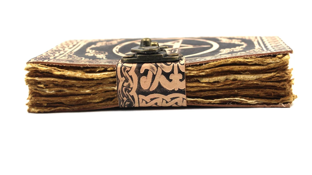 This vintage leather-bound journal notebook is a unique addition to your collection. The handmade antique deckle edges paper adds a touch of elegance to this vintage paperback. The cover material is made of high-quality leather and features a beautiful design. This unit is perfect for those who are looking for a reliable and stylish journal notebook. It is made in India and is available in a unit quantity of 1. This notebook is perfect for blank diaries and journals, calendars and planners, and office supplies. It is also great for business and industrial use. Get your hands on this exquisite piece of art today! * Cover - Leather * Closure - Brass Lock * Pages -200 * Size -7x5 * Pages -Handmade Vintage Deckle Edge