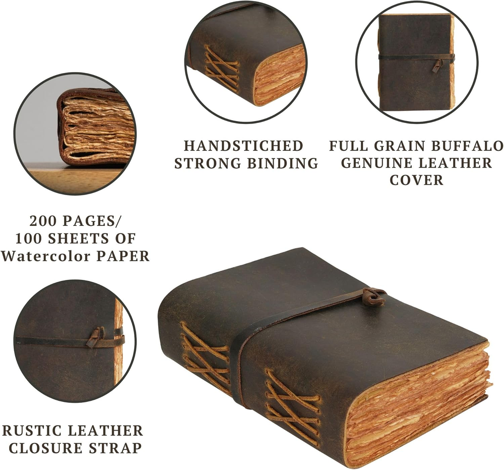 Store New Arrivals Add to Favorite View Feedback Contact - Vintage Leather Bound Journal for Men & Women - 13"X8" | Rustic Brown | 200 Deckle Edges Watercolor Paper - Book of Shadows, Writing Notebook, Sketchbook, Planner, Spell Book Description Item model number -A-01 Style Vintage Leather Bound Journal Product Dimensions 8 x 13 x 1.5 inches Number of Items 1 Color Distressed Brown Pages 200 Pages Cover Material Leather Sheet Size 8 inches Manufacturer Part Number -A-01 Item Weight 2.61 pounds Theme Book Ruling Plain Ruling Type Plain Special Feature Personalized Size 13.5 inches X 8.5 inches Soft Supple Thick Genuine Leather - The Leather Journal Is Made From Naturally Tanned Full Grain Leather Which Feels And Smells Amazing. It'S Soft And Very Comfortable In The Hands. Don'T Be Fooled With Competitors Using Cheap Substitutes, This Is The Real Deal. Vintage Paper - Vintage Journal Is Made Of Unique Vintage Paper Which Looks Like It Was Pulled From History. You Will Love The Old Looking Handmade Cotton Paper (200 Pages) Which Is Unique To Our Vintage Journals. Use Any Kind Of Pen - Sketch, Doodle, Write On Your Journal Notebook With A Calligraphy Pen Fountain Pen, Brush Pen, Ball Pen, Acrylic Colours, Watercolor And Many More. Stylishly Medieval- Ancient Looking Rustic Cotton Paper Combined With The Beauty Of Distressed Leather, Hand Stitched By Artisans, Creates A Keepsake You Will Cherish Forever. Makes A Great Gift For The Men, Women, And Wiccans In Your Life! Sturdy Binding, Leather Wraparound - Sturdy Hand Stitched Binding To Make Sure That No Paper Comes Out Loose.The Leather Wraparound That Slips In Will Make Sure That The Papers Inside The Journal Are Safe And Secure. Product Description ABOUT US We offer the best prices around on high quality products. Our E-store includes media such as books, movies, music and games while offering electronics, toys, sporting apparel, clothing, tools, general home, garden items and more. SHIPPING We are always working hard to ensure your package arrives as soon as possible. Please understand that some factors like weather, high postal traffic, and the performance of shipping companies are outside of our control. We offer free shipping to the lower 48 states and ship within 2 business days of payment, usually sooner. We do not accept P.O. Boxes. Please provide a physical address. For shipping outside of the continental USA, we only use eBay's Global Shipping Program.The item is shipped to KY and then sent to the rest of the world. International customers are responsible for all duties and taxes. Continue to check out in order to calculate costs for shipping the item to your country. Messages regarding eBay's Global Shipping Program MUST be directed at eBay EXCLUSIVELY. RETURNS We offer a 30-Day Return Policy on items which you are not completely satisfied with. You have the option for a full-refund or an exchange of the item. No returns are available on items shipped outside of the USA. PAYMENT We accept PayPal. CONTACT US This page content is yet to come Please ad us to your favorite seller and visit again later Thank You CUSTOMER SATISFACTION We try our very best to make sure every customer is completely satisfied. If there's a problem, message us! We're happy to help.