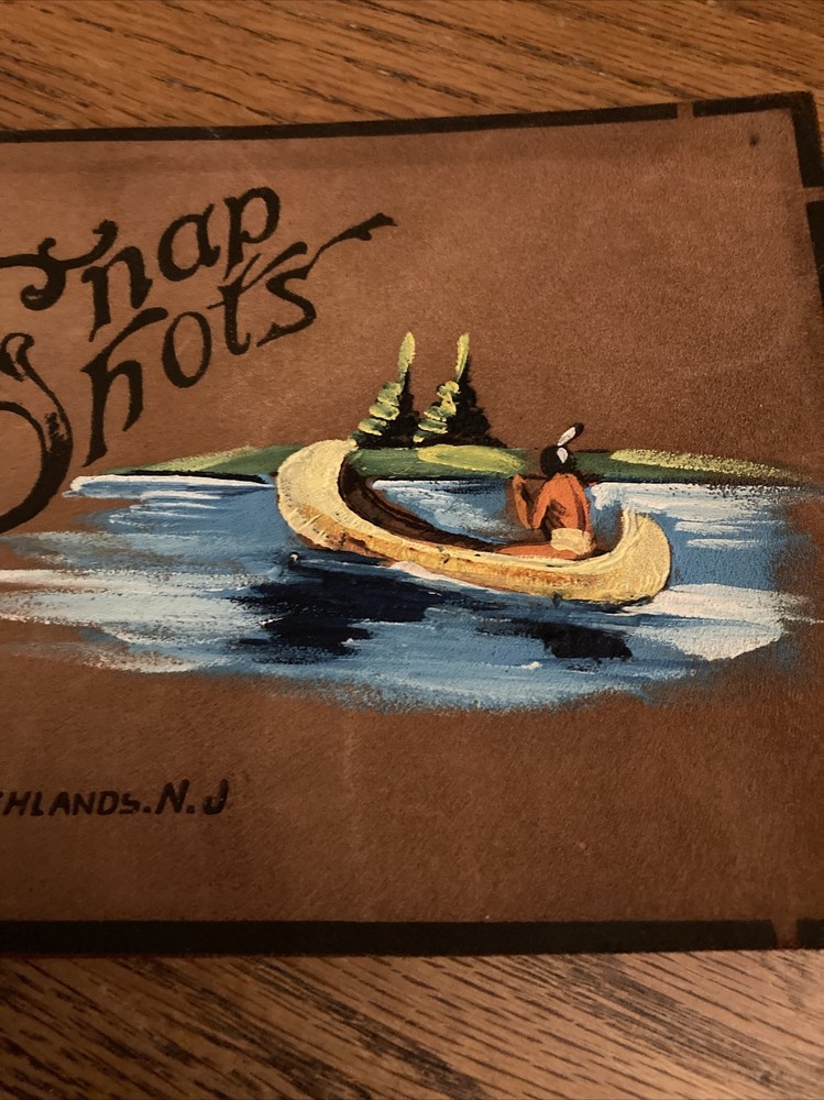 Vintage Leather Bound Souvenir Photo Album Unused Highlands NJ Indian....