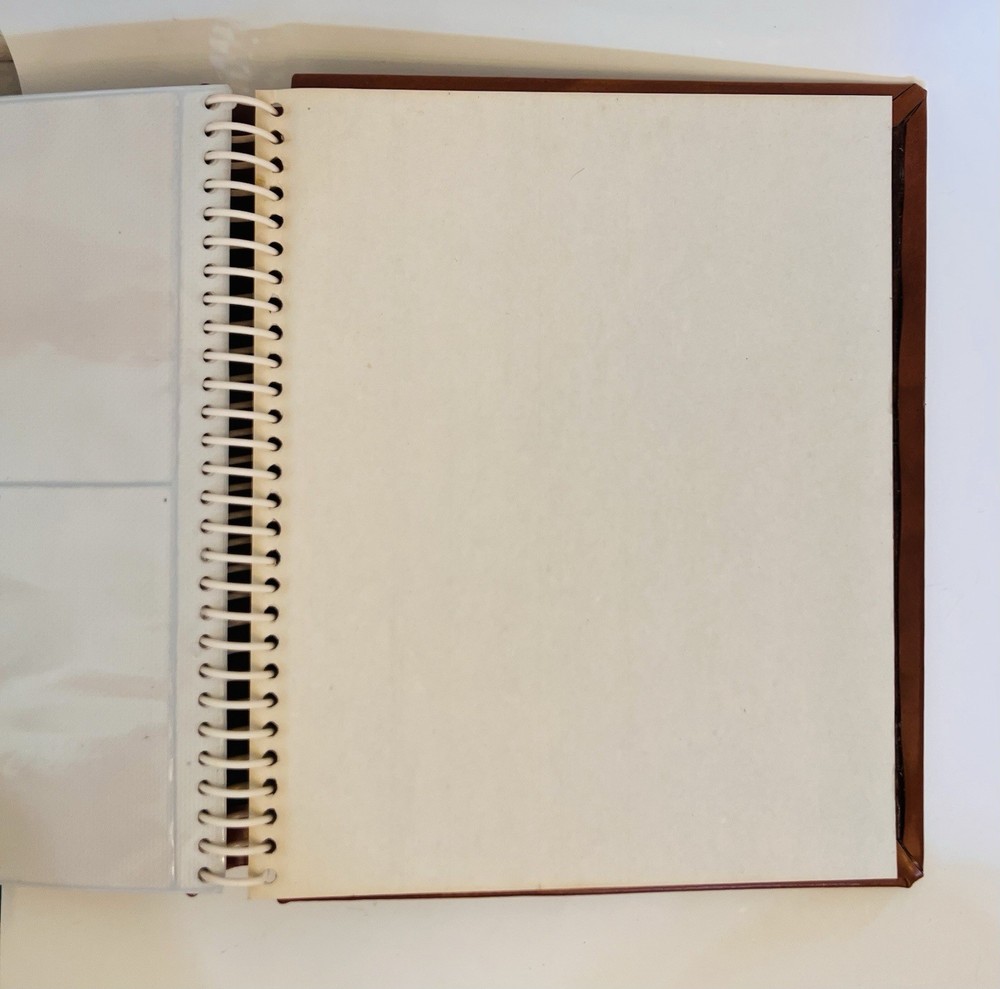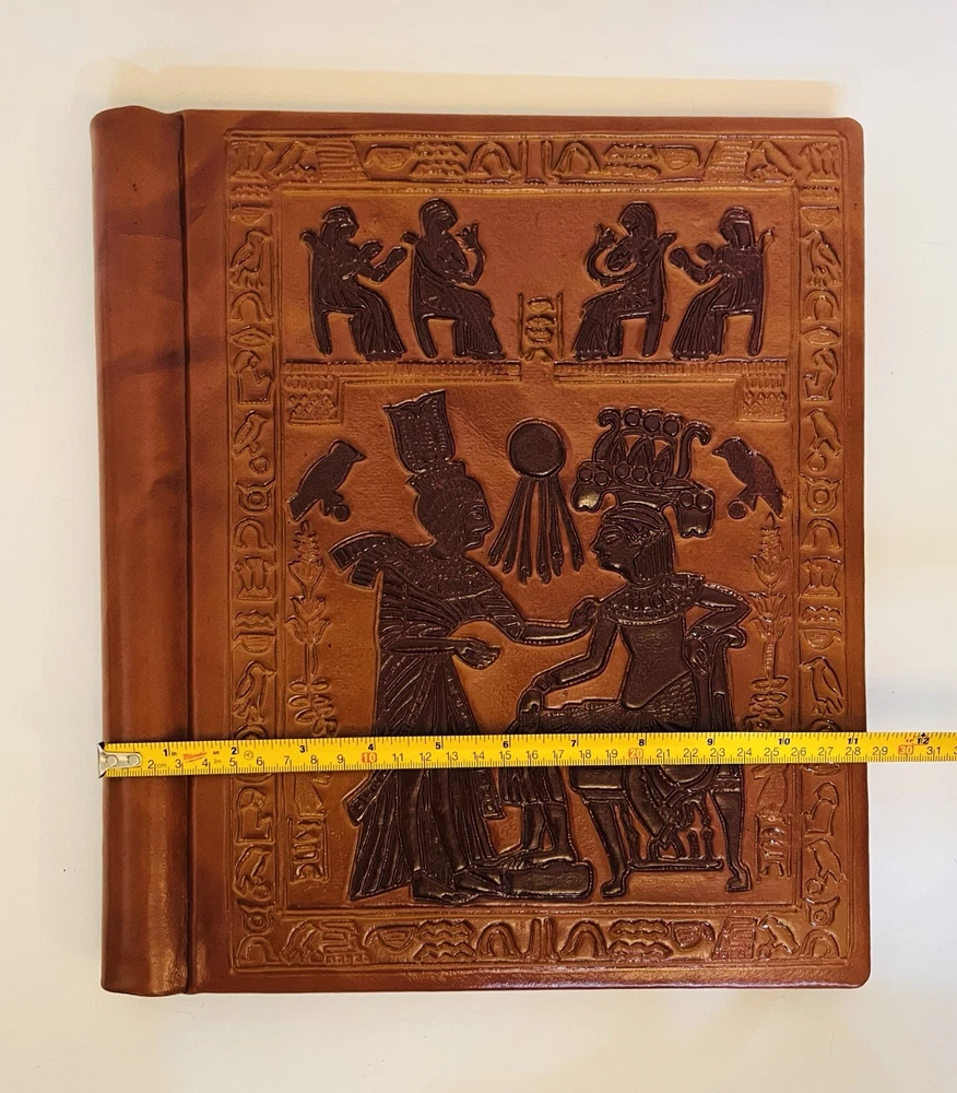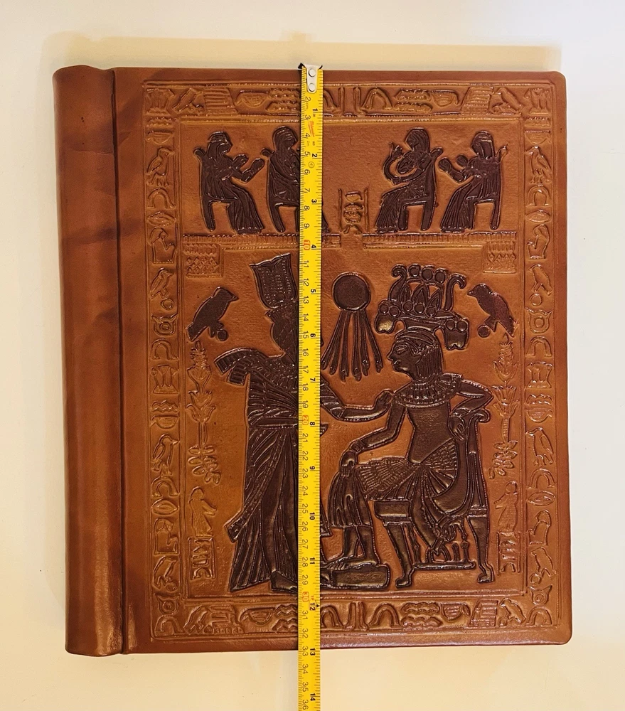 Vintage Tooled Leather Egyptian Hieroglyphics Brown Plastic Bound Photo Album.