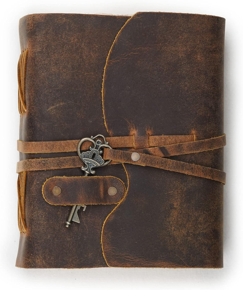 LEATHER JOURNAL: This Leather Village Vintage Journal is crafted from Cruelty-Free Water Buffalo Genuine Leather, naturally tanned with oils, salt, and scents. VINTAGE DECKLE PAPER: Elevate your writing experience with this Leather-Bound Journal, showcasing 200 Pages (Both Sides) 125 GSM thick Virgin Cotton Handmade Deckle Edge watercolor Paper. This paper is an impeccable canvas for both dry and wet mediums. JOURNAL FOR MEN & WOMEN : This versatile leather notebook is offered in a variety of colors and sizes, catering to both men and women. With four size options - 6X4”, 8X6”, 10X7”, and 13X8” - you can find the perfect fit for your requirements. Take your pick from a wide selection of nine colors. LEATHER VILLAGE PROMISE: Our Vintage Leather Journal reflects a dedication to quality craftsmanship. We use top-tier materials and meticulous attention to detail. Your satisfaction is our priority. One-of-a-Kind: Crafting these journals with Genuine Leather and Hand-Dipped Paper ensures that each journal possesses distinct variations in appearance and shading, resulting in a truly unique piece. The texture and color of both the leather and paper may naturally differ, adding to the individuality of each journal. Product Description Leather Journal Treasure Hunt Series By Leather Village Affordable Luxury for all your moods Available in 3 Sizes : 8 inches X 6 inches 10 inches X 7 inches 13.5 inches X 8 inches Some More Basic Details of Leather Bound Journal :- LEATHER: Genuine water buffalo leather ( Cruelty Free leather ). 150GSM Virgin Egyptian Cotton Handmade paper. Hand-Stitched with leather cord of 2.5 mm Paper is Suitable for all Dry & Wet Mediums and Pen. No Bleed Through. VARIETY: AVAILABLE IN Various Colors Weed Green, Starless Black, Yellow, Brown, Cappuccino CLOSURE: Wrap around closure with Antique Brass Key to keep paper safe. CAUTION: Do not use hard eraser on paper Each Piece is Handcrafted with love and care especially for you in India. Leather Journal Treasure Hunt Genuine Leather : We use a thicker, higher grade leather combined with incredible craftsmanship to create a journal that is soft and supple in the hand with that fabulous, intense leather scent.Our water buffalo leather is prepared in the crazy horse style and takes on its own distressed character with use. Considered the highest quality leather, these hides are also the least touched by human hands – retaining much of their texture and markings that occur naturally during life. Because each hide is unique, it’s possible to find slight variations in color among Notebooks which make them ONE OF A KIND. 200 GSM Paper with Deckle Edges Pages Antique Durable Key Closure HIGH QUALITY LEATHER BOUND JOURNAL Artisan crafted leather bound journal notebook, unique art journal. Made with thick genuine water buffalo leather with earthy scent combined with unbeatable Indian craftsmanship and designed with precision.Because each hide is unique, it’s possible to find slight variations in color among Notebooks which make them ONE OF A KIND. The soft and supple dark brown leather has a distressed finish which gets better with time, and will last for years to come. 200 Pages 200 GSM Thick of Handmade Vintage Deckle Edge Paper The Journal has 200 GSM thick antique rustic paper which gives you a feel of writing on a old medieval book . The paper is thick enough to hold all kinds of ink , watercolor, acrylic paints . The deckle edge paper is smooth enough to write with all kind of Pens with no bleed through. It is acid free and pH neutral so whatever you write stays for generations . Buy This to Enjoy !! Timeless Piece of Art Medieval Era Paper along with a vintage key Closure and the beauty of distressed leather, handcrafted by Artisans makes it a masterpiece that you can cherish for lifetime Fill your journal with breathing of your heart Artists Sketchbook, Scrapbook, Poetry book Meal Planner and Grocery Lists,Bible Journal Meeting Reminders, Faith Journal, Travel Diary Thoughts Book Give Wings to your Creativity The 150 GSM Cotton Handmade paper is suitable to preserve your creativity for centuries. Record all precious moments of your life and pass it on to Generations. Neutral Ph Paper will keep your memories safe for centuries. Secure hand binding so no paper comes out loose from your vintage notebook . An ideal gift for artist writers, travelers, graduates, friends, or anyone who has a love for writing and note-taking. A Journal that is worthy of your thoughts and ideas, that will make you feel special every time someone opens it and that will last a lifetime. Unique Key Closure Journal 200 GSM Thick Vintage Recycled acid-free cotton paper Secure and Sturdy Binding Ideal for Daily Writing and Drawing Needs Why Choose Leather Village Journals ? Old World Unique Gift Beautiful addiction that unlocks the power of your creativity and inspires you to manifest your dreams. Each LEATHER VILLAGE leather journal and notebook draws on our craftsmen roots, Built with trust, unbeatable quality, lasting and durable. More than just a blank book these vintage journals becomes an extension of yourself, a companion to fill with all your journey. Create your Own Masterpiece We all have the potential to create a story. Each story will live on with LEATHER VILLAGE Journals. An Old-world Charm meets modern practicality in this leather bound journal secured with a leather tie. It's perfect for recording ideas, anecdotes, lessons learned, daily events of fond memories.So make writing your daily Habit to give yourself clarity. Leather Village Quality Leather Village prides itself on making products from the highest quality materials with attention to detail. We stand behind our products regardless of what happens, we stay with you. Hard Work Counts Write History ...... Everyone deserves a legacy A relic, an heirloom, a keepsake. Every person in this world has the right to leave a dent in the universe. We all have the potential to create a st