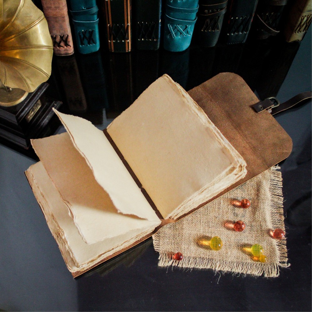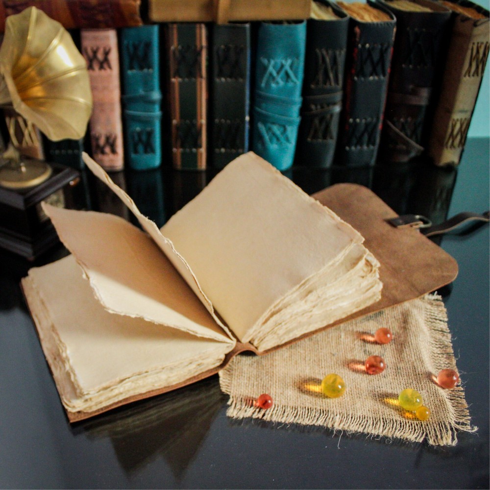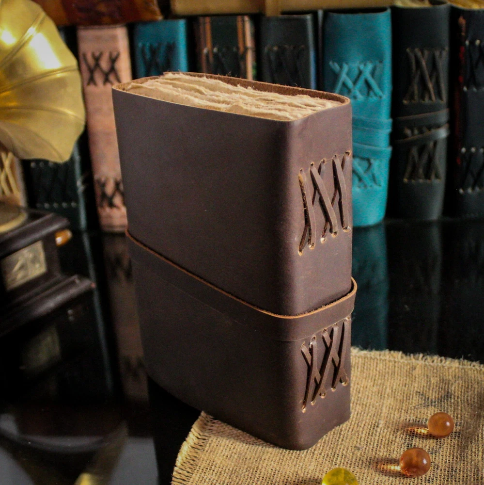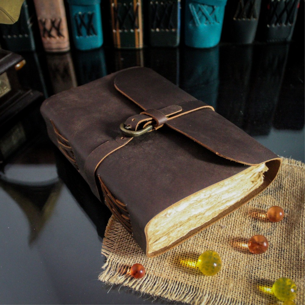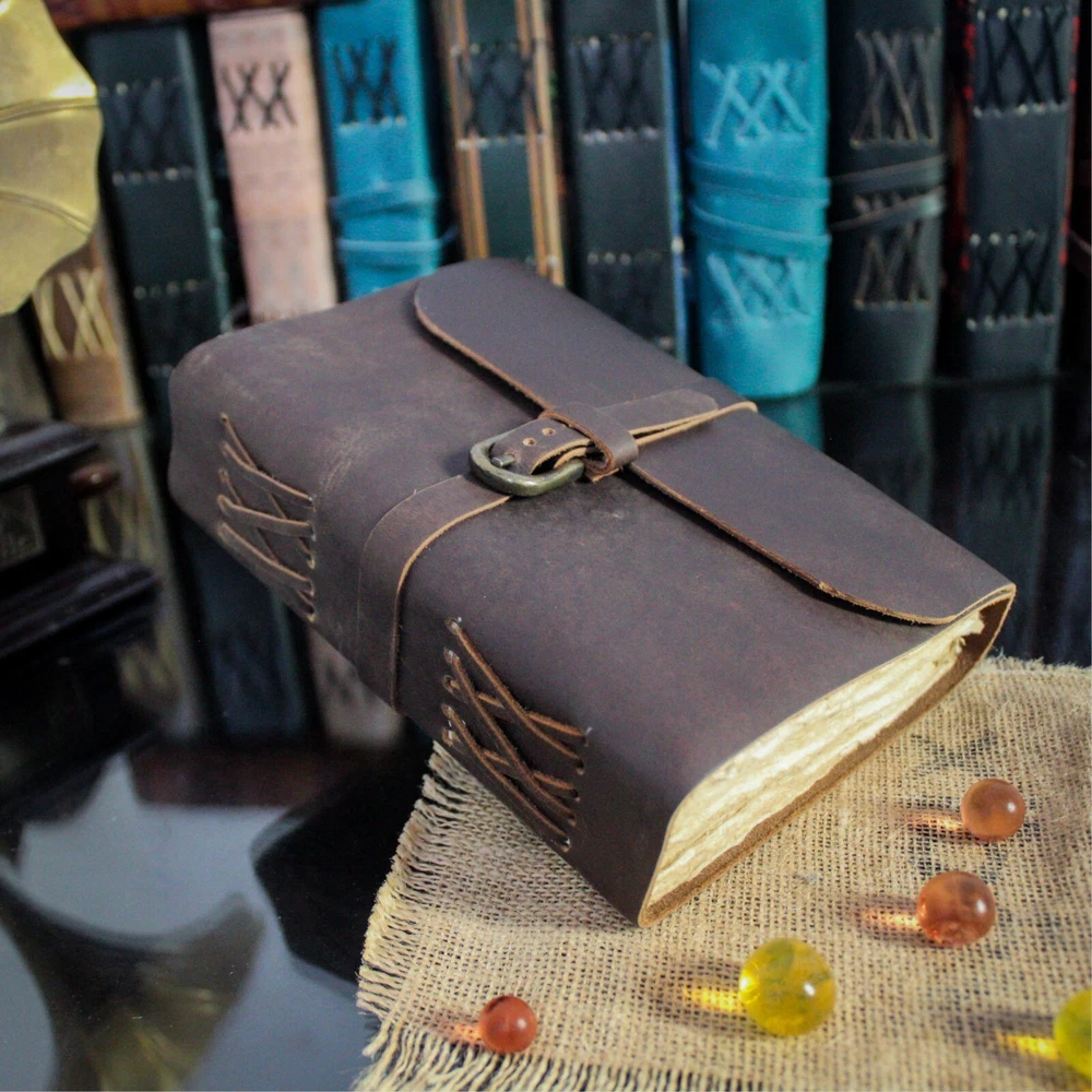 PERFECT HANDCRAFT JOURNAL Made from 100% Buffalo Leather with Antique Deckle Edge Paper. This Book Is Hand Crafted by Artisans Working with Leather for Decades. The Color of The Journal Is Very Unique Vintage Brown. USE ANY KIND OF PEN Write/sketch/doodle on your journal notebook with a Fountain Pen Calligraphy Pen, Ball Pen, Brush Pen, Acrylic Colours, Watercolor. IDEAL USE AND PERFECT GIFT Perfect Use for Business Executive, Poetry Work, Journalists, Craftsman, Writer. A Lovely Treat for Your Loved Ones for An Anniversary, Birthday or Graduation Present, Or for Someone Starting A New Adventure and A Perfect Gift for Those Who Love Vintage One. DIMESNIONS (7” X 5” X 2”) With Uncut Deckle Edge Paper, Easily Handle Notebook, You Can Fit with Minimum Space, Easily Handle in Long Journey. Once You Have Used It You Will Feel Like You Have the Best Journal in the World. BINDING Binding Is Made by Hand Stitching Which Having Enough Strength That the Paper Never Comes Out. The Leather Strap Wrap Around the Journal Is Complete Solution for Paper Safety and Open-Close the Journal. The Journal Made by High Quality Buffalo Leather and Paper Have Been Used Is Vintage Historical Paper Which Is Very Durable. OUR GUARANTEE If for any reason you don’t love the Wanderings vintage notebooks please let us know and we’ll send you a refund - no questions asked. It is as simple as that!