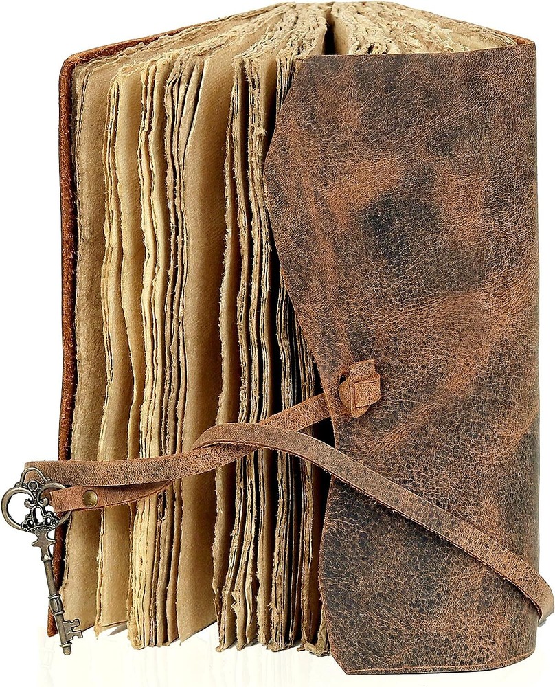 ✔️ PERFECT HANDCRAFT JOURNAL - Made from 100% Buffalo Leather with Antique Deckle Edge Paper. This Book Is Hand Crafted by Artisans Working with Leather for Decades. The Color of The Journal Is Very Unique Vintage Brown. ✔️ Use Any Kind Of Pen - Write/sketch/doodle on your journal notebook with a Fountain Pen Calligraphies, Ball Pen, Brush Pen, Acrylic Colors, Watercolor. IDEAL USE AND PERFECT GIFT – Perfect Use for Business Executive, Poetry Work, Journalists, Craftsman, Writer. A Lovely Treat for Your Loved Ones for An Anniversary, Birthday or Graduation Present, Or for Someone Starting A New Adventure and A Perfect Gift for Those Who Love Vintage One. ✔️ Dimension – With Uncut Deckle Edge Paper, Easily Handle Notebook, You Can Fit with Minimum Space, Easily Handle in Long Journey. Once You Have Used It You Will Feel Like You Have the Best Journal in the World. ✔️ BINDING AND KEY BOOKMARK – Binding Is Made by Hand Stitching Which Having Enough Strength That the Paper Never Comes Out. The Key Is Very Antique Can Be Used as Bookmark. The Leather Strap Wrap Around the Journal Is Complete Solution for Paper Safety and Open-Close the Journal. The Journal Made by High Quality Buffalo Leather and Paper Have Been Used Is Vintage Historical Paper Which Is Very Durable. Leather journal Leather notebook Leather blank book Leather diary Leather journal for men Leather journal for women Leather sketch book Leather journal for writing