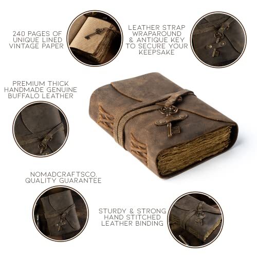 Vintage Leather Journal Lined Pages with Key - Antique Handmade Deckle Edge Vintage Paper Leather Bound Journal - Book of Shadows Journal - Leather Sketchbook - Drawing Journal - Great Gift Handmade Vintage Paper - As with all of the Nomad products, the Vintage Leather Journal with Key is handmade. Made with 240 lined pages that’s handcrafted to look like an antique paper, making it look like it was pulled from the library’s history section. Use Any Kind of Pen - Don’t let its antique looks deceive you from the fact that you can use all kinds of pens on this amazing vintage journal. From the standard fountain pen to a more unorthodox ball pen, you can use whatever pen you want. Stylishly Medieval - Ancient looking rustic cotton paper combined with the beauty of distressed leather, hand stitched by Artisans, creates a keepsake you will cherish forever. Makes a great gift for the men, women, and wiccans in your life! Strong & Sturdy Binding, Leather Wraparound and Key - Great quality journals always start with its binding. For the Vintage Leather Journal with Key, the binding is stitched by sturdy hands to make sure no paper comes loose. The added leather wraparound with a cute key that slips in will ensures that the papers are safe and secure. Our 365 Day Replacement Promise - We are very confident that you will fall in love with your Vintage Journal that we offer a 1-year guarantee. If you are not happy with your leather-bound writing journal for any reason, we will offer a full refund or a free replacement. No Questions asked! PRODUCT DESCRIPTION: Size: 7"x5” | Color: Vintage Brown Bring out your inner creativity with the NomadCraftsCo. Antique Leather-Bound Writing Journal for Women and Men! This journal features a deckle-edged vintage paper that looks (and feels!) like it’s a thousand years old. - In short, it’s an absolute treat to write on! Made from environment-friendly jute canvas and cotton, the paper is 100% free from any artificial materials that can degrade its quality. It’s also pH neutral, which means it's acid-free. No more worries about ink messing up the pages either. The thick pages are ideal for pen, pencil, crayons, and even charcoal! We can guarantee no bleed through! The leather-bound journal made from antique paper is a treasure that you can pass down the generations. The leather is soft and supple to the touch and smells amazing. The leather will age over time and will get better and better. It’s the perfect travel companion to cherish memories or even to jot down precious ideas and there is no better way to preserve your memories for your future generations. Get Yourself the Most Valuable Travel Companion Today – Never Have to Travel Alone Again. Handcrafted by skilled artisans with a lot of love and care. Here’s Why This Vintage Leather-Bound Writing Journal Is What You Are Looking For: Soft Luxurious Durable and Supple Rustic Leather-Bound Cover which ages with time. 240 Lined Pages of Antique Handmade Deckle Edge Vintage Cotton Paper which looks like thousand years old. Sturdy Leather Binding Technique with a Key will make sure that the pages never fall off. Medium size 7 by 5 inches rustic scrapbook/organizer easily p Shipping We offer FREE shipping on all orders! We ship within Three business days of payment, usually sooner. We use a selection of shipping services such as UPS, FedEx, USPS etc. We only ship to the lower 48 states, no APO/FPO addresses or PO Boxes allowed. Local pickups and combined shipping options are not provided at this time. International buyers – please note: Import duties, taxes, and charges aren't included in the item price or postage cost. These charges are the buyer's responsibility. Please check with your country's customs office to determine what these additional costs will be prior to bidding or buying. Order Cancellation Policy * Order Cancellation Policy ** You can return a product for up to 30 days from the date you purchased it. 1. The seller reserves the right to cancel the special case only due to eBay cancellation fee. 2. The decision of seller is the final. 3. The seller will respond to the cancellation request within 2 business days. Please wait for the result of cancellation. 4. In case the cancellation is not completed by some reasons, the buyer can follow the options below to get the refund. 4.1 The buyer can reject the item when it arrives. 4.2 The buyer can send the item back to the seller within 30 days If the buyer receives item (USA Shipment ONLY). The seller will provide the FREE return label to the buyer when the buyer opens " Return Item" case on eBay by using the reason as "Change my mind" ONLY. 5. When buyer has placed the order. The order will be processed and completed by automatic warehouse system within 5 minutes. In case that buyer sends the cancellation request after 5 minutes of placing the order, the request will be rejected. **Sending direct message to cancel the order is not allowed for every case.* Return Policy - If buyer would like to return the items for refund or replacement, please CONTACT SELLER to receive the free return label from seller. The refund or replacement will be processed with the tracking number of return label which is provided by seller only. The other ways of return which are not approved by seller will not be processed for the refund or replacement. Return You can return a product for up to 30 days from the date you purchased it. Any product you return must be in the same condition you received it and in the original packaging. Please keep the receipt. Payment We accept payment by any of the following methods: eBay Payments Please pay as soon as possible after winning an auction, as that will allow us to post your item to you sooner! Feedback Customer satisfaction is very important to us. If you have any problem with your order, please contact us and we will do our best to make you satisfied. Contact Us If you have any queries, please contact us via ebay.