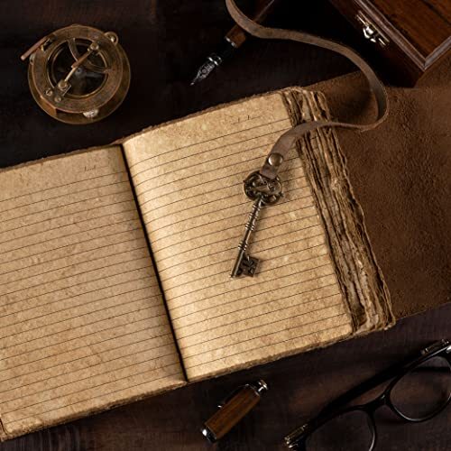 This vintage leather journal is absolutely stunning—the handmade deckle edges and antique-style paper give it such a timeless, old-world charm. The lined pages are perfect for writing, sketching, or even as a Book of Shadows, and the leather binding feels luxurious yet durable. The little key adds a whimsical touch, making it feel like a treasured heirloom. It’s surprisingly practical too—ink doesn’t bleed, and any pen glides smoothly. A perfect gift for writers, artists, or anyone who loves unique, handcrafted treasures!