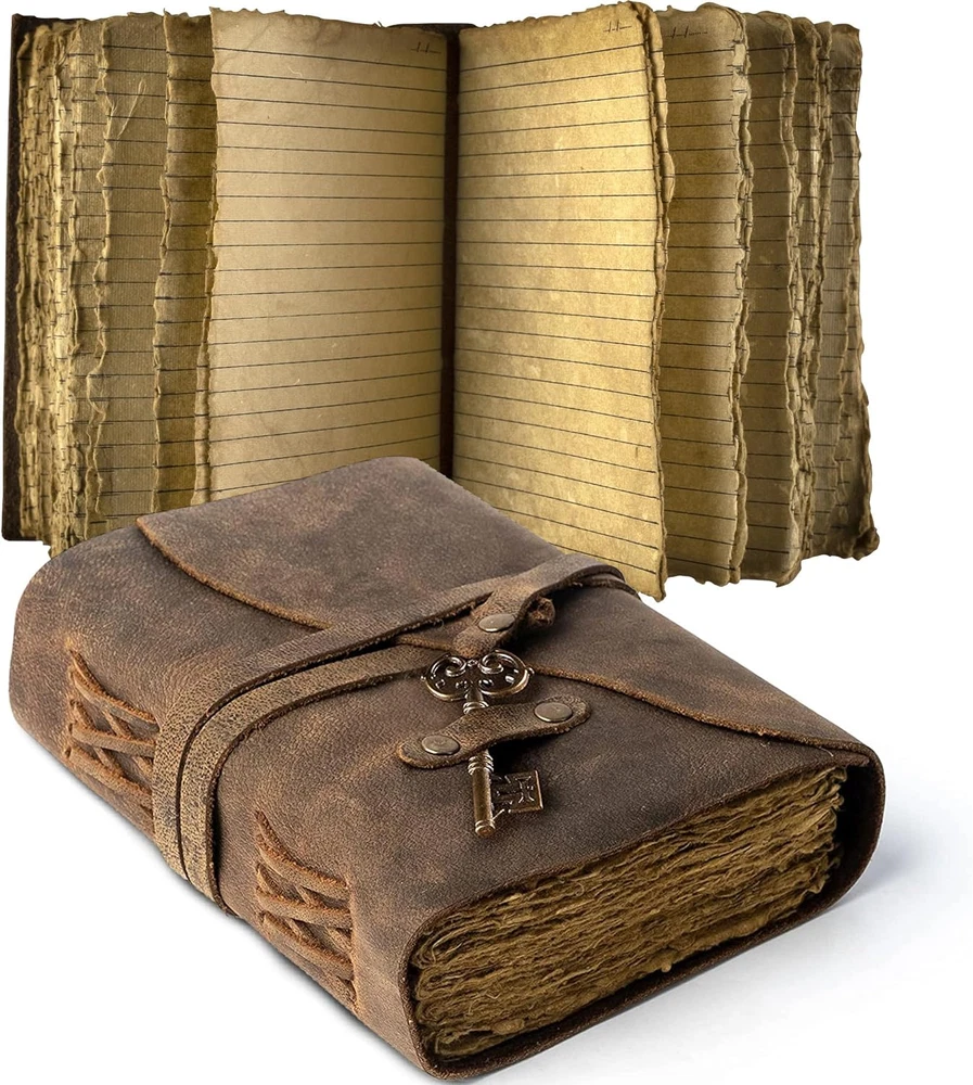 Store New Arrivals Add to Favorite View Feedback Contact Vintage Leather Journal Lined Pages with Key - Antique Handmade Deckle Edge Vintage Paper Leather Bound Journal - Book of Shadows Journal - Leather Sketchbook - Drawing Journal - Great Gift Description Item model number NOMAD-LINEDC-VIN-7-5 Style rustic Product Dimensions 7"L x 5"W x 3"Th Number of Items 1 Color Vintage Brown Brand NomadCraftsCo. Manufacturer Part Number NOMAD-LINEDC-VIN-7-5 Pages 240 Item Weight 15.5 ounces Theme Book Ruling Plain Ruling Type Plain Manufacturer NomadCraftsCo. Special Feature Lock Cover Material Leather Size 7" x 5" Handmade Vintage Paper - As with all of the Nomad products, the Vintage Leather Journal with Key is handmade. Made with 240 lined pages that’s handcrafted to look like an antique paper, making it look like it was pulled from the library’s history section. Use Any Kind of Pen - Don’t let its antique looks deceive you from the fact that you can use all kinds of pens on this amazing vintage journal. From the standard fountain pen to a more unorthodox ball pen, you can use whatever pen you want. Stylishly Medieval - Ancient looking rustic cotton paper combined with the beauty of distressed leather, hand stitched by Artisans, creates a keepsake you will cherish forever. Makes a great gift for the men, women, and wiccans in your life! Strong & Sturdy Binding, Leather Wraparound and Key - Great quality journals always start with its binding. For the Vintage Leather Journal with Key, the binding is stitched by sturdy hands to make sure no paper comes loose. The added leather wraparound with a cute key that slips in will ensures that the papers are safe and secure. Our 365 Day Replacement Promise - We are very confident that you will fall in love with your Vintage Journal that we offer a 1-year guarantee. If you are not happy with your leather-bound writing journal for any reason, we will offer a full refund or a free replacement. No Questions asked! Product Description ABOUT US We offer the best prices around on high quality products. Our E-store includes media such as books, movies, music and games while offering electronics, toys, sporting apparel, clothing, tools, general home, garden items and more. SHIPPING We are always working hard to ensure your package arrives as soon as possible. Please understand that some factors like weather, high postal traffic, and the performance of shipping companies are outside of our control. We offer free shipping to the lower 48 states and ship within 2 business days of payment, usually sooner. We do not accept P.O. Boxes. Please provide a physical address. RETURNS We offer a 30-Day Return Policy on items which you are not completely satisfied with. You have the option for a full-refund or an exchange of the item. No returns are available on items shipped outside of the USA. PAYMENT We accept PayPal. CONTACT US This page content is yet to come Please ad us to your favorite seller and visit again later Thank You CUSTOMER SATISFACTION We try our very best to make sure every customer is completely satisfied. If there's a problem, message us! We're happy to help.