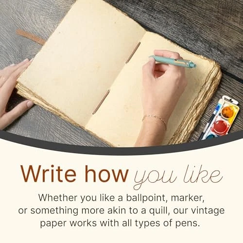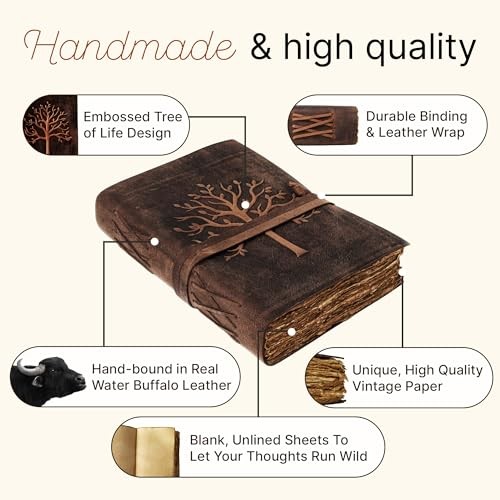 Absolutely love this vintage leather journal! The Tree of Life embossing is stunning, and the antique paper gives it such a unique, timeless feel. Perfect for sketching, writing, or journaling—pens glide smoothly without bleeding. The leather is soft and ages beautifully, making it feel like a personal treasure. Fast shipping and great quality—highly recommend for anyone who appreciates handmade craftsmanship!