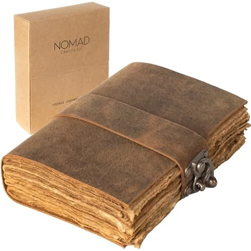 Return Policy Fast Delivery Trusted seller Vintage Leather Journal with Gift Box - Old Leather Bound Grimoire, Sketchbook, and Notebook - Perfect Leather Journals for Women and Men - Elegant Vintage Book for Writing and Drawing Product Description VINTAGE LEATHER JOURNAL WITH GIFT BOX : Capture memories in style with this vintage leather scrapbook, perfect for creating a unique junk journal book. This vintage journal is made from genuine buffalo leather, naturally tanned with oils and chrome-free. Each daily journal, crafted from cruelty-free leather, varies in look and shade, producing a truly unique item. LEATHER SKETCHBOOK WITH VINTAGE LOCK : This sketchbook combines elegance and functionality with a belt wrap-around closure and an antique brass lock, keeping your pages safe and secure. The hand-stitched binding is sturdy, ensuring that no paper comes loose, so you can sketch and journal with peace of mind. 200 GSM WATERCOLOR PAPER : Ideal for artists, writers, and vintage enthusiasts, this leather-bound journal is a must-have accessory. It features handmade deckle-edged paper crafted from recycled cotton waste, ensuring a no-bleed experience. This mixed media sketchbook is perfect for writing, watercolor, acrylics, pastels, and all dry and wet mediums. Use it as a sketch pad, watercolor sketchbook, and more THE PERFECT GIFT: This vintage-inspired journal makes an exquisite and timeless gift for a wide range of recipients, including women, men, teen girls, boys, and beloved grandparents. It’s an ideal present for anniversaries, birthdays, graduations, or for anyone embarking on a new adventure. Treat your loved ones to this charming keepsake. GUARANTEE : Buy our vintage journal with confidence, thanks to our 100% satisfaction —if you're not happy, we'll refund your money. Enjoy the timeless charm of this beautifully crafted journal. Shipping Returns Payment Shipping Shipping is FREE to all addresses other than APO/PO boxes in the lower 48 states. All our stock ships from US-based warehouses. Shipped via USPS or UPS (depending on location and package weight) Unless stated otherwise, all orders will ship within 24-72 hours of your payment being processed. Check our feedback to see the great reviews of FAST shipping we offer. Returns Seller does not accept returns Payment We currently accept payment via eBay managed payments only. Once payment is cleared, we will dispatch your shipment within 1-3 business days. Please refer to the "Shipping" tab for more information regarding shipping speed to your destination.