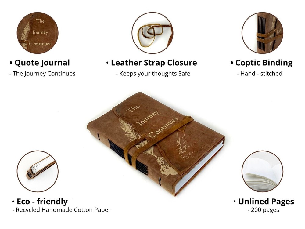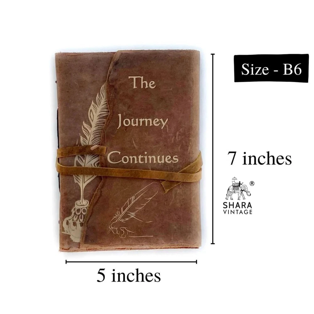 Handmade Leather bound Journal for Women, Leather Travel Journal, Antique Brown Leather Journal - Blank Travelers Notebook Handmade Paper Diary . โฐ๏ธ ๐ง๐ต๐ฒ ๐๐ผ๐๐ฟ๐ป๐ฒ๐ ๐๐ผ๐ป๐๐ถ๐ป๐๐ฒ๐ (๐๐ถ๐ณ๐ฒ - ๐๐ฒ๐ฎ๐๐ต - ๐ฅ๐ฒ๐ฏ๐ถ๐ฟ๐๐ต) โฐ๏ธ โข A Quote that teaches us that time is cyclical. The seasons change, life comes to an end but nothing is ever really lost because everything returns again, in a repeating natural cycle. Perhaps in another shape, perhaps in another way, but always present. ๐๐ป๐ผ๐ ๐๐ผ๐๐ฟ ๐๐ผ๐๐ฟ๐ป๐ฎ๐น โช๏ธ ๐ฆ๐ถ๐๐ฒ: 5" length โ๏ธ 7" tall / 13 cm โ๏ธ 18 cm โช๏ธ ๐๐ผ๐น๐ผ๐๐ฟ: Antique Brown โช๏ธ ๐ข๐๐๐๐ถ๐ฑ๐ฒ ๐ ๐ฎ๐๐ฒ๐ฟ๐ถ๐ฎ๐น: Genuine Leather โช๏ธ ๐๐ป๐๐ถ๐ฑ๐ฒ ๐ ๐ฎ๐๐ฒ๐ฟ๐ถ๐ฎ๐น: Handmade Recycled Cotton Paper โช๏ธ ๐ก๐ผ. ๐ผ๐ณ ๐ฃ๐ฎ๐ด๐ฒ๐: 180 โ๏ธ ๐ฉ๐ถ๐ป๐๐ฎ๐ด๐ฒ ๐๐ฒ๐ฎ๐๐ต๐ฒ๐ฟ ๐๐ผ๐๐ฟ๐ป๐ฎ๐น: This Vintage Leather Journal is made with purely Handmade papers and gives a rich Antique look. It looks and shows as it was pulled from history. We assure you that you will fall in love with the antique handmade Leather Journal. โ๏ธ ๐ง๐ฟ๐๐น๐ ๐ฉ๐ฒ๐ฟ๐๐ฎ๐๐ถ๐น๐ฒ: This Shara Vintage Leather Travel Journal is the perfect size for all your writing, note-taking, travelling and much more. Our customers have been known to use it for Gratitude Journal, Instagram photo book or scrapbook, Bullet Journal, Life moments tracker, Vacation scrapbook, Story writing, Hunting Logbook, Poetry Work, Bible Journaling. โ๏ธ ๐๐ฐ๐ผ-๐ณ๐ฟ๐ถ๐ฒ๐ป๐ฑ๐น๐ ๐ฏ๐ ๐ก๐ฎ๐๐๐ฟ๐ฒ: A lot of thought went into making sure the journal had a positive environmental effect. So, we decided to use only 180 pages/ 90sheets of handmade non-refillable recycled cotton fiber paper that is thick enough to withstand any type of pen. Our paper is acid-free and no trees were harmed in its making. โ๏ธ ๐ช๐ฟ๐ถ๐๐ถ๐ป๐ด: This Antique Leather Journal can be used as a Writing Life memories, vacation journal, Daily Notepad, Bullet Journal, Travelling, Story writing, Travel diary, poetry journal, ideal to write and record your daily thoughts and life lists. โ๏ธ ๐จ๐๐ฎ๐ด๐ฒ: Perfect Gift For Friends And Family or simply to keep for yourself! ๐ฃ๐ฒ๐ฟ๐ณ๐ฒ๐ฐ๐ ๐ณ๐ผ๐ฟ ๐ฎ๐น๐น ๐๐ผ๐๐ฟ ๐ฑ๐ฎ๐ถ๐น๐ ๐๐ฟ๐ถ๐๐ถ๐ป๐ด ๐ฎ๐ป๐ฑ ๐ฑ๐ฟ๐ฎ๐๐ถ๐ป๐ด ๐ป๐ฒ๐ฒ๐ฑ๐ -- Leather Travel Journal -- Dungeons and Dragons Journal - DND -- Mothers / Fathers Day Gift -- Gratitude journaling -- Photobook or scrapbook -- Letters to your loved ones -- Daily Notepad -- Scheduling and appointment reminders -- Life moments tracker -- Vacation scrapbook -- Story writing -- Notebook to write in ๐๐ผ๐ ๐ถ๐ ๐๐ ๐บ๐ฎ๐ฑ๐ฒ? โข Handmade from hand-rubbed, distressed leather hide with a one-of-a-kind character that is long-lasting and will only improve with age. โข Handmade in India by village artisans utilizing traditional craftsmanship and techniques which have been passed from generation to generation. โข Each Leather Journal is carefully hand bound with 100% acid-free Plain recycled cotton pages suitable for use with any type of pen for all everyday writing tasks. ๐ฆ ๐ฃ๐ฅ๐ข๐๐จ๐๐ง๐๐ข๐ก ๐ง๐๐ ๐ & ๐ฆ๐๐๐ฃ๐ฃ๐๐ก๐ : โข Ready To dispatch โข Free Standard Shipping in the USA โข If you are from outside the USA please refer to the Shipping section. ๐๐ถ๐๐ฐ๐น๐ฎ๐ถ๐บ๐ฒ๐ฟ : โข Handmade from high-quality look leather hide which is soft and flexible yet strong. โข Scars and marks, twists and notches in the leather are all part of its unique charm. โข No two are exactly alike just as no one is exactly the same!