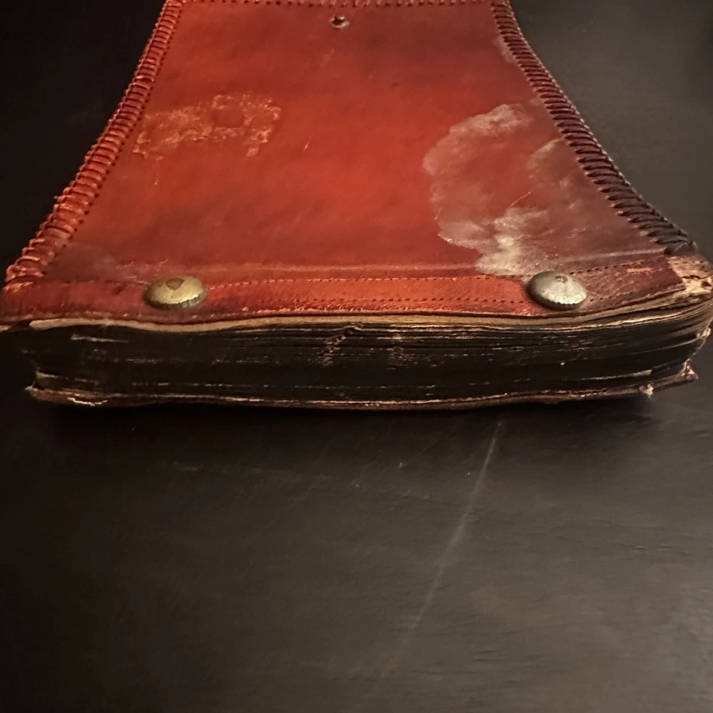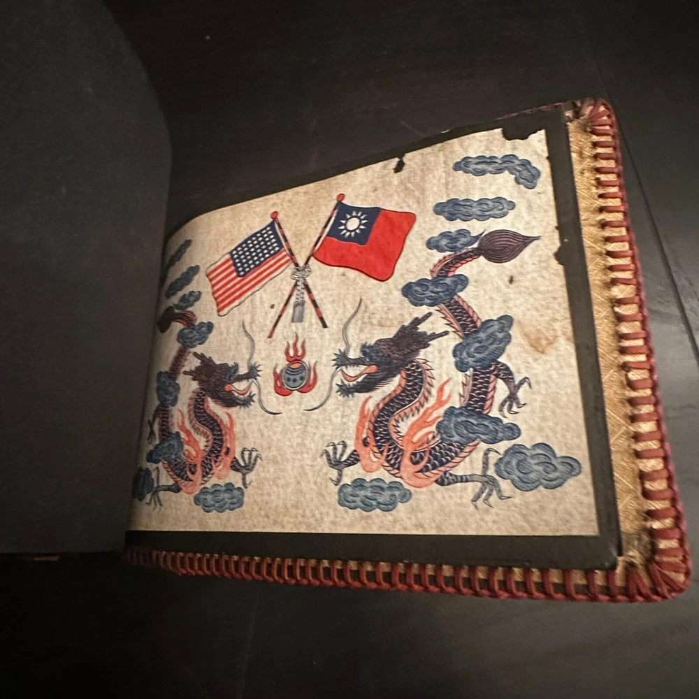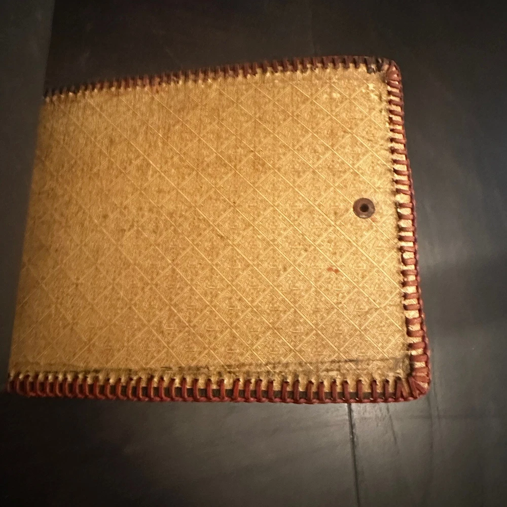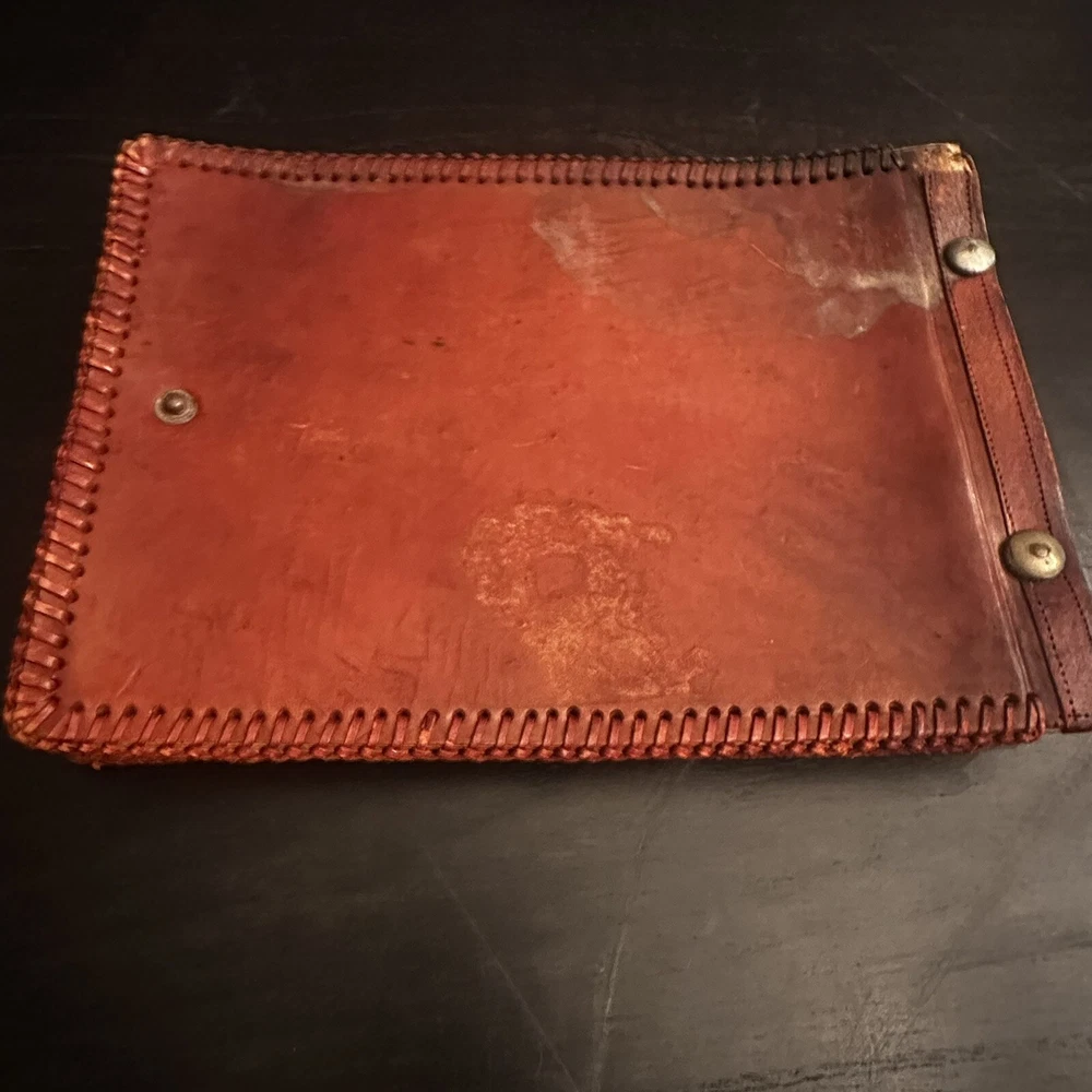 Vintage Leather Photo Album 1940's Pacific Theater ORIENTAL TSINGTAO PIER with original Rice Paper. I bought this at an estate sale, it does have some water damage and is missing the button close strap as shown in photos. Please look at all pictures as they are part of condition. It still has all the original rice paper art on the pages. Some are a bit torn, several are not at all. Really great piece of history. Book measures 11” x 7” about 1.5” thick.