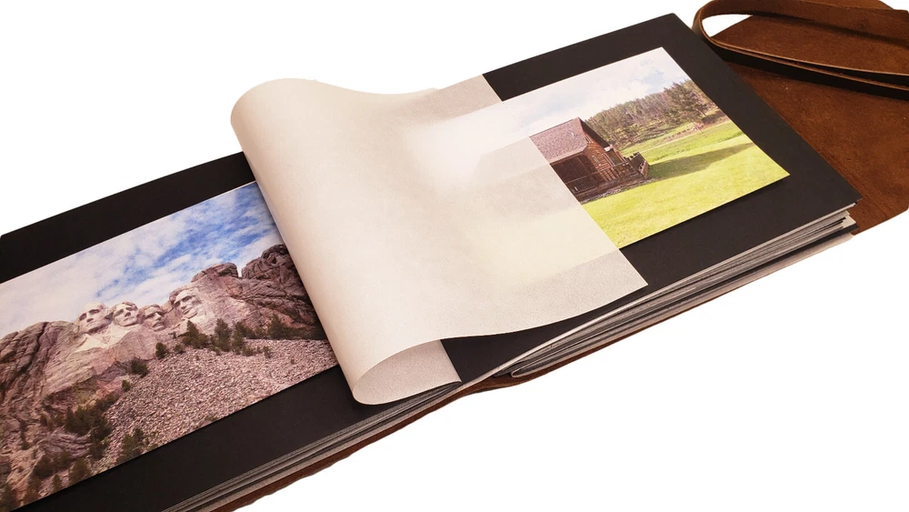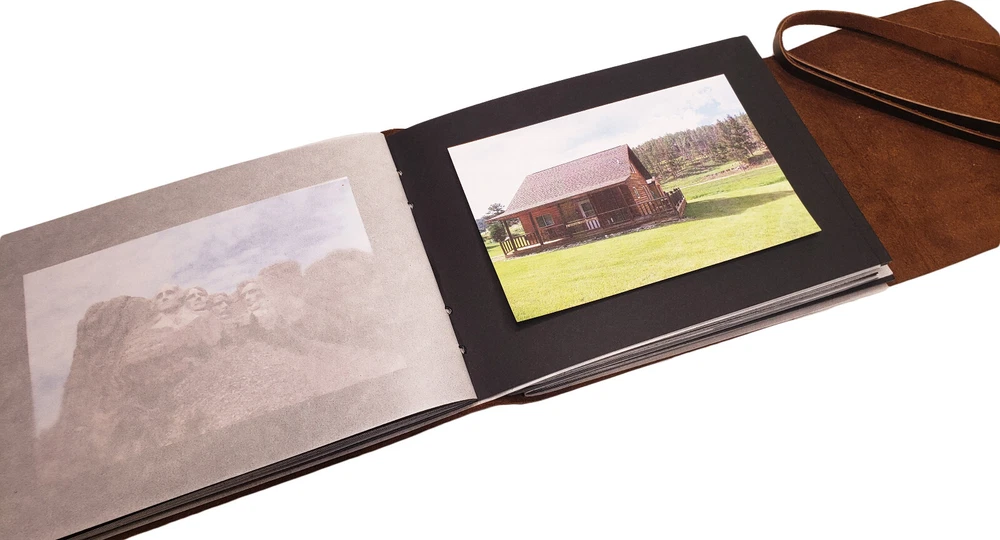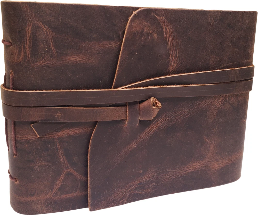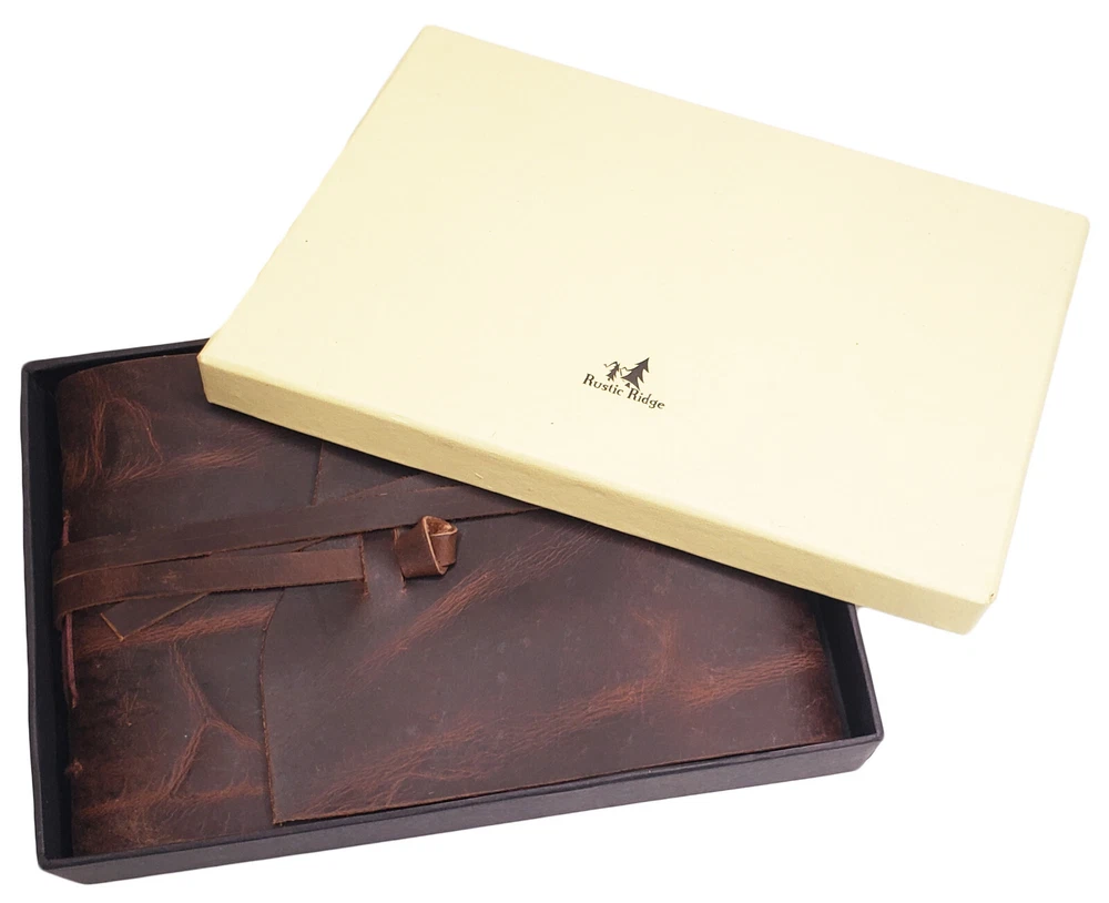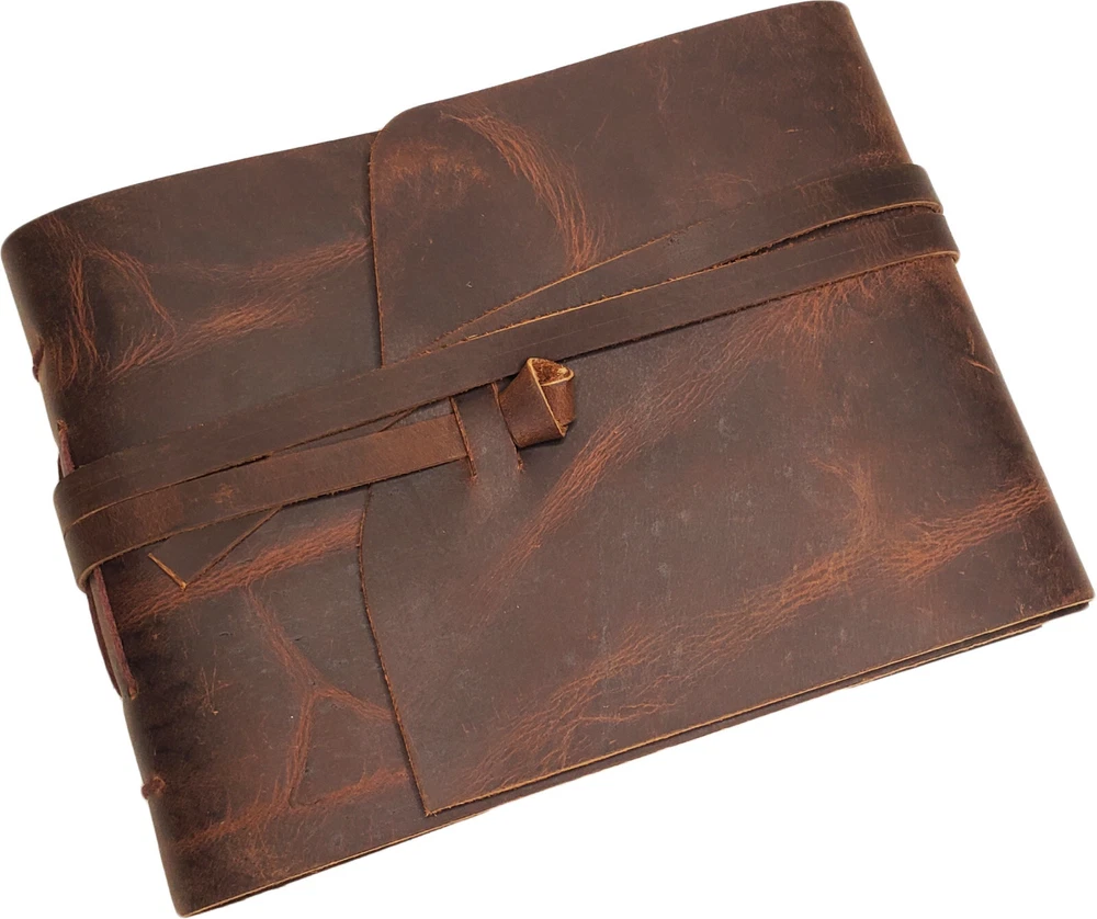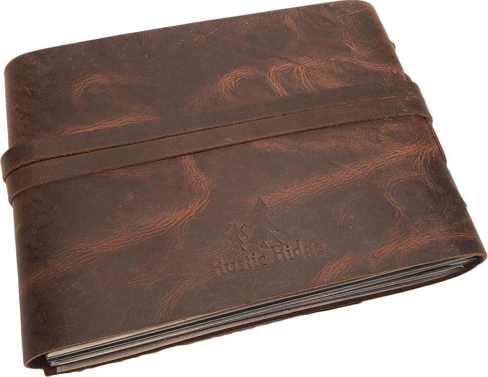 Rustic Ridge Genuine Leather Photo Album with Gift Box Leather Bound Scrapbook Album - 6x8" Genuine Leather Photo Album with black pages. New for 2024. Hand made using high quality leather and acid-free black cardstock paper. **Photo mounts required.** Traditional cardstock pages with semi-transparent sheet between each page. Includes 50 pages (25 sheets) of cardstock pages. Holds 50 4x6" or 5x7" photos. Album size: 8.25"L x 6"W Page Size: 7.25"L x 5.5"W Gift box included Very stylish and classy way to store and present your photos. Makes a great gift. Attention Customer: This album does not have photo slots. Photo Mounts are needed to mount photos in this album (sold separately). Double sided tape also works well. This leather photo album by Rustic Ridge Leather is the perfect way to store and present your photos with style and class. The rustic leather cover is made from high quality leather that not only looks great, but will last for years to come. The leather photo album holds 50 4x6" or 5x7" photos, and is the perfect size to bring along with you to gatherings with family and friends. This Rustic Leather Photo Album gives a uniquely classic look, style, and feel that you will not find in a modern style photo albums. Natural variations in the leather make each album one of a kind, and adds to the unique character of each one. This is a scrapbook style photo album. The black pages are traditional acid-free cardstock with a semi-transparent sheet between each page, allowing you to attach photos to both sides of the pages. This leather photo album makes a perfect unique gift for the person in your life who seems to have everything , or you can buy it for yourself. Either way, you will be pleasantly surprised with the look, smell, quality, and class of this hand made leather photo album by Rustic Ridge Leather. ***We are the manufacturer and ONLY authorized seller of Rustic Ridge Leather brand products. You'll get the best price and service by buying directly from us.*** We pride ourselves in providing quick shipping. All purchases are shipped within 1 business day of completed payment, and tracking information will be available from within your Ebay account. Your satisfaction is important to us! That is why we take great care to ensure that each order gets shipped out quickly, and we are committed to providing each and every customer with the highest level of customer service, before and after the sale.