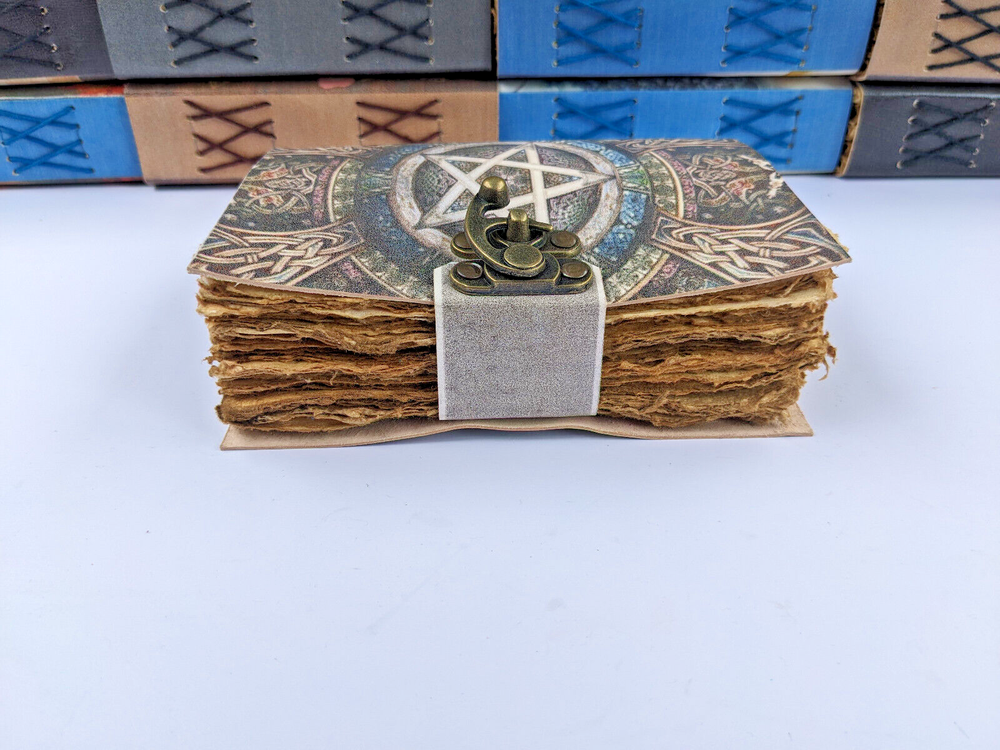 This vintage leather-bound journal is a unique addition to any collection. The antique handmade paper notebook diary sketchbook has been crafted with care in India by DIVYA VINTAGE CRAFT. The journal is a perfect blank diary for personal use, with 1 unit quantity available. The cover material is made of high-quality leather, giving it a sleek and sophisticated look. The journal is perfect for those who appreciate vintage paperback books. It is an ideal choice for keeping track of important dates, jotting down notes, or simply as a decorative piece. This journal is a must-have for anyone who values vintage items and wants to add a touch of history to their collection. * Cover - Leather * Closure - Brass Lock * Pages -200 * Size -7x5 * Pages - 100% Handmade Unique Antique Deckle Edge Papers