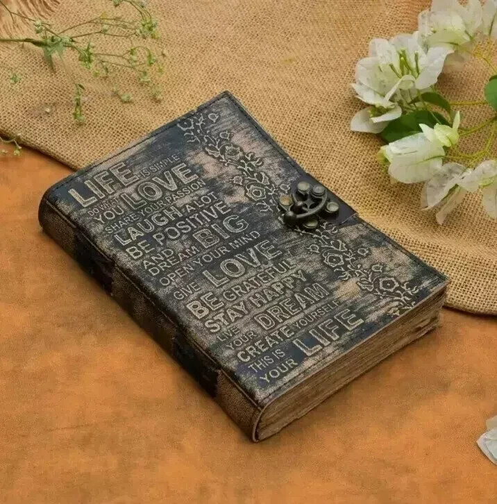 If you're looking for a quality leather journal crafted to last or a perfect gift for that special someone, you've hit the jackpot! Every journal we make is custom made to order and crafted with genuine full grain leather our exquisite Leather Journal Diaries with Deckle Edge Vintage Paper and complete with stunning designs on the cover Each diary is expertly handcrafted using high-quality leather, ensuring durability and longevity. Shree Handcrafts journals feature deckle edge vintage paper. ✦ Manufacturer : Swati Art & Design ✦ Leather – Best Quality Genuine Leather ✦ Soft Natural Handmade Leather Cover ✦ Bronze lock closure ✦ Color – Distressed Brown ✦ Paper - Handmade Vintage/Antique Deckle Edge Paper ✦ Size - 7 x 5 Inches ✦ Pages - 200 Pages both side ✦ Material -- Leather Cover, Handmade Plain Paper, leather strap lock closer ✦Care Instructions: Wipe clean with a dry cloth. ✦ Antique Paper - Vintage Journal is made of unique vintage paper which looks like it was pulled from history. You will love the old looking handmade cotton paper. which is unique to our vintage journals. ✦ Sturdy Binding, Leather Wraparound And Key - Sturdy hand stitched binding to make sure that no paper comes out loose. The leather wraparound with a cute key that slips in will make sure that the papers inside the journal are safe and secure. ✦ Sketchbook is great for keeping by the bedside to jot down dreams, or for use as a diary or journal. ✦ It is a truly unique and wonderful gift for a friend, the men, women, and wiccans in your life! or to treat yourself to as a special keepsake ✦ our journals are influenced by symbolism that is derived from the Wicca/Pagan community, creating a personalized space where your inner creative genius can flourish. ✦ The paper is made from sustainable cotton and jute canvas. The paper is acid-free and pH neutral therefore is a timeless piece of art. ✦ Use Any Kind Of Pen - Sketch, Doodle, Write on your journal notebook with a Calligraphy Pen Fountain Pen, Brush Pen, Ball Pen, Acrylic Colors, Watercolor and many more. ✦ Shipping Policy :- Orders will be dispatched from our location in India within one to Two working day once the payment is cleared. Although, we make every effort to ship the items within one day. # Free Shipping for all world and fast shipping # FAST SHIPPING-I WILL SHIP NEXT WORKING DAY BY ( USPS ,DHL EXPRESS AND INDIA POST ) ✦Approximate delivery time for economy service :- ✦ UK, USA & Singapore : 8 - 15 days ✦ Europe : 10 - 20 days ✦ Rest of World : 15 - 30 days ✦ Timelines mentioned are working days based on the recent feedback from our buyers and not guaranteed. Delivery times vary during peak periods