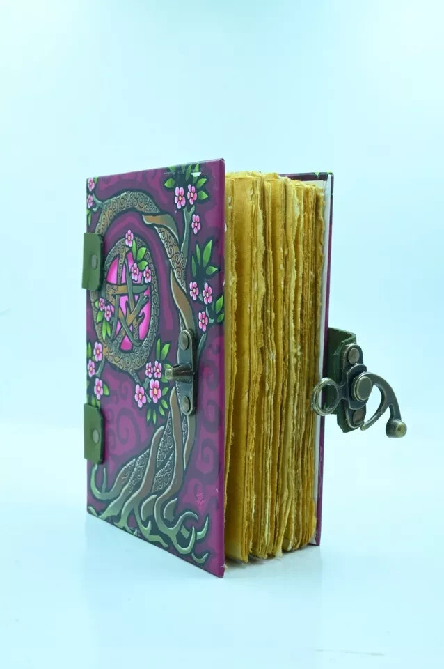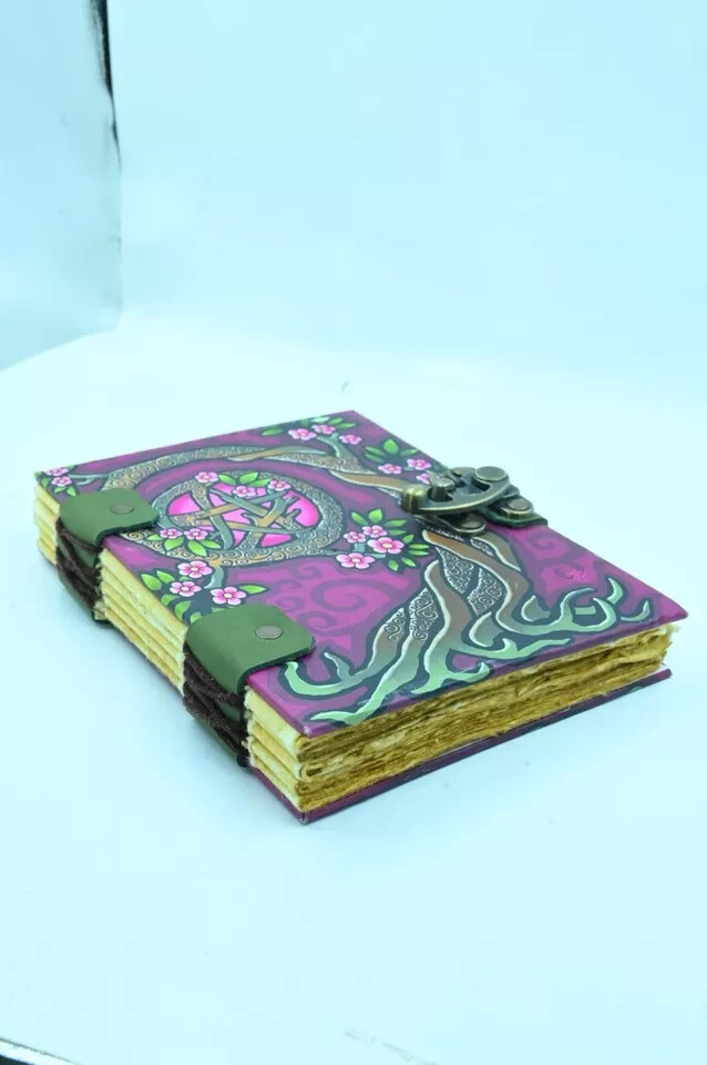 Product Details ➔ If you're looking for a quality leather journal crafted to last or a perfect gift for that special someone, you've hit the jackpot! Every journal we make is custom made to order and crafted with genuine full grain leather our exquisite Leather Journal Diaries with Deckle Edge Vintage Paper and complete with stunning designs on the cover Each diary is expertly handcrafted using high-quality leather, ensuring durability and longevity. Shree Handcrafts journals feature deckle edge vintage paper. ✦ Manufacturer : susadesignin ✦ Leather – Best Quality Genuine Leather ✦ Soft Natural Handmade Leather Cover ✦ Bronze lock closure ✦Color – Brown ✦ Paper - Handmade Vintage/Antique Deckle Edge Paper ✦ Size - 6 x 8 Inches ✦ Pages - 200 Pages both side ✦ Material -- Leather Cover, Handmade Plain Paper, leather strap lock closer ✦Care Instructions: Wipe clean with a dry cloth. ✦ Antique Paper - Vintage Journal is made of unique vintage paper which looks like it was pulled from history. You will love the old looking handmade cotton paper. which is unique to our vintage journals. ✦ Sturdy Binding, Leather Wraparound And Key - Sturdy hand stitched binding to make sure that no paper comes out loose. The leather wraparound with a cute key that slips in will make sure that the papers inside the journal are safe and secure. ✦ Sketchbook is great for keeping by the bedside to jot down dreams, or for use as a diary or journal. ✦ It is a truly unique and wonderful gift for a friend, the men, women, and wiccans in your life! or to treat yourself to as a special keepsake ✦ our journals are influenced by symbolism that is derived from the Wicca/Pagan community, creating a personalized space where your inner creative genius can flourish. ✦ The paper is made from sustainable cotton and jute canvas. The paper is acid-free and pH neutral therefore is a timeless piece of art. ✦ Use Any Kind Of Pen - Sketch, Doodle, Write on your journal notebook with a Calligraphy Pen Fountain Pen, Brush Pen, Ball Pen, Acrylic Colors, Watercolor and many more.