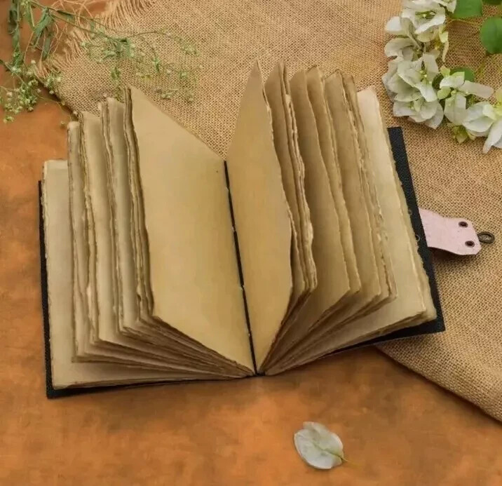Vintage Leather Journal with Antique Handmade Paper for Writing Sketching and Notes