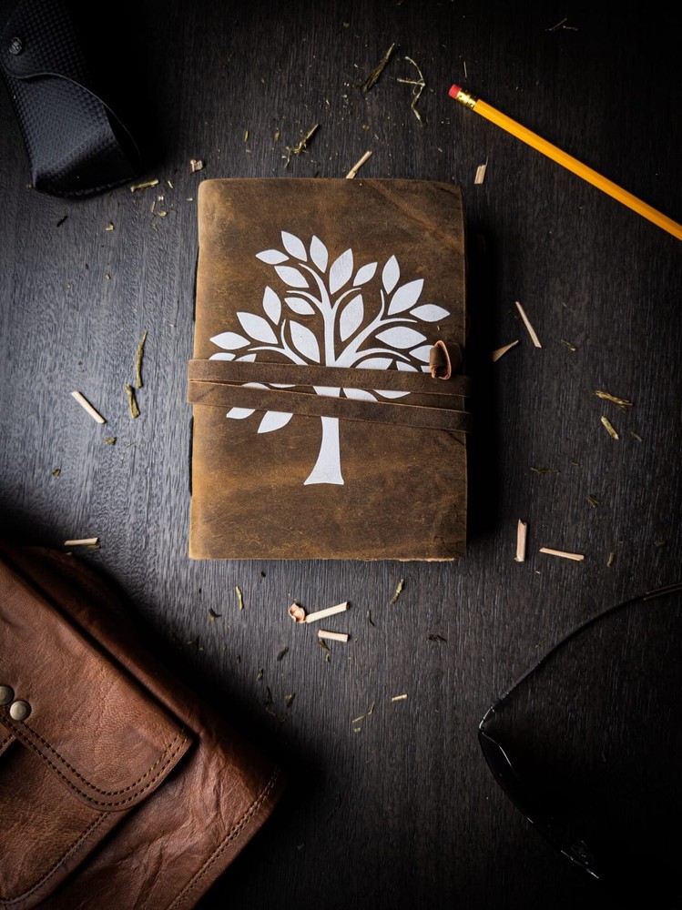 Versatility: This classy leather vintage Journal with dimensions 8inches in height and 6inches in width, Diary, spellbook, Notebook can be used for writing personal, travel, memory notes, doddle, draw, sketch, write, calligraphies, poetry, business notes, thoughts etc. You can also use any ink including gel pens, pencils, fountain pen, ball pen, watercolor, brush pen, etc. Vintage and handmade: The product is made from genuine pure goat leather and has a unique antique brown leather color. This vintage leather-bound journal is handmade and contains 240 deckle edge recycled paper pages which makes this product eco-friendly. Also, the leather is very sturdy and durable which means you can use this for a long time and reduce environmental waste. Gift: This also makes a perfect gift for your loved ones who loves vintage boho look and on special occasions like, birthday, anniversary, Father's Day, Mother's Day, graduation, new job, traveler, nomad etc. Tree of life design on the cover that bring positive vibes. The diary closes with a strap that wraps around. Prompt Delivery : As a USA-based seller, we understand the excitement of receiving your journal swiftly. Trust in our fast and reliable shipping to bring this treasure to your doorstep in no time. 30-Day Money-Back Guarantee : We are confident that you'll love your journal. But if, for any reason, you're not fully satisfied, simply contact us within 30 days of your purchase, and we will gladly arrange a refund. Your satisfaction is our utmost priority.
