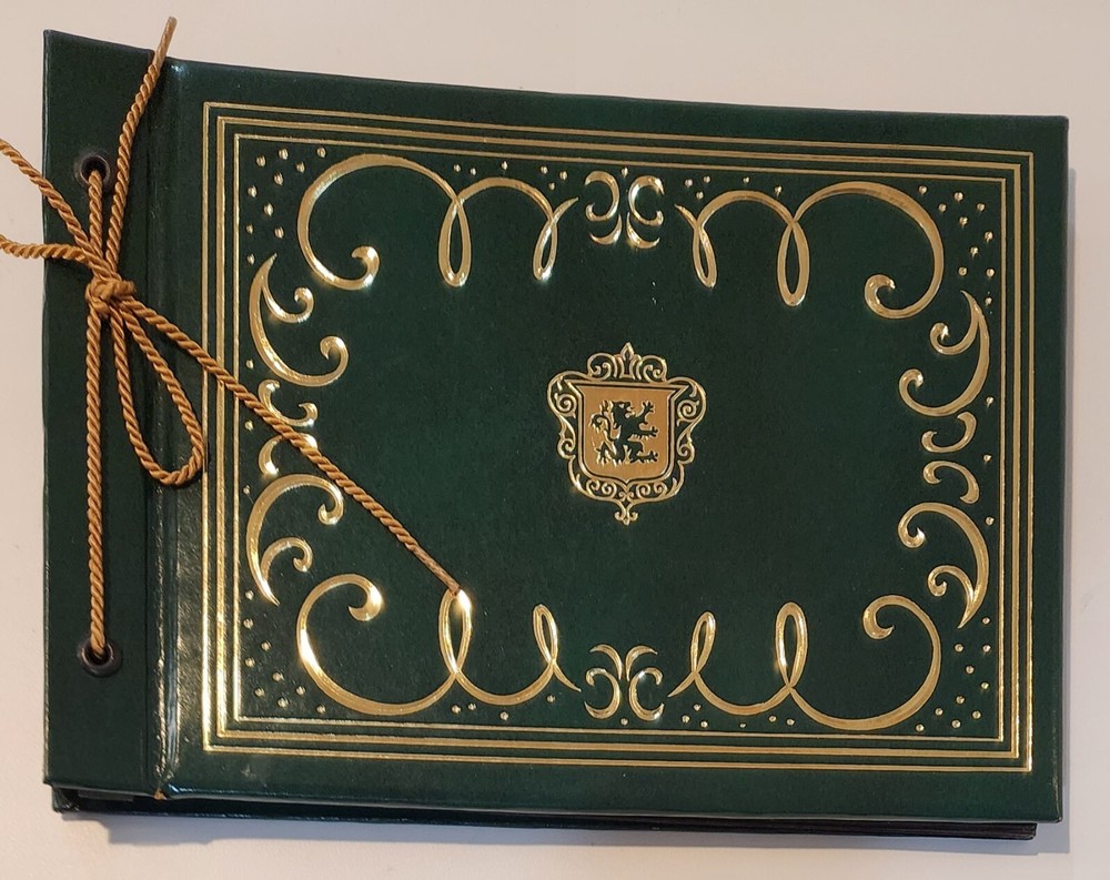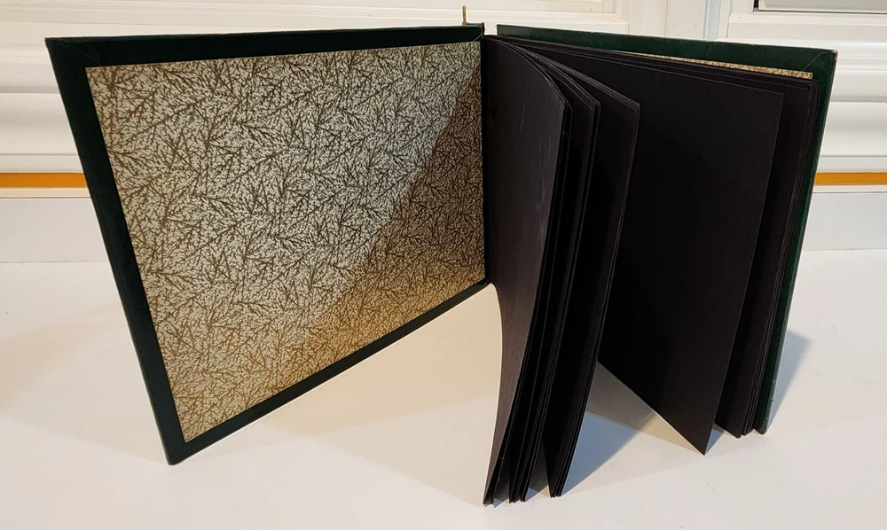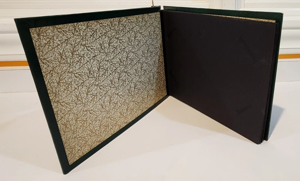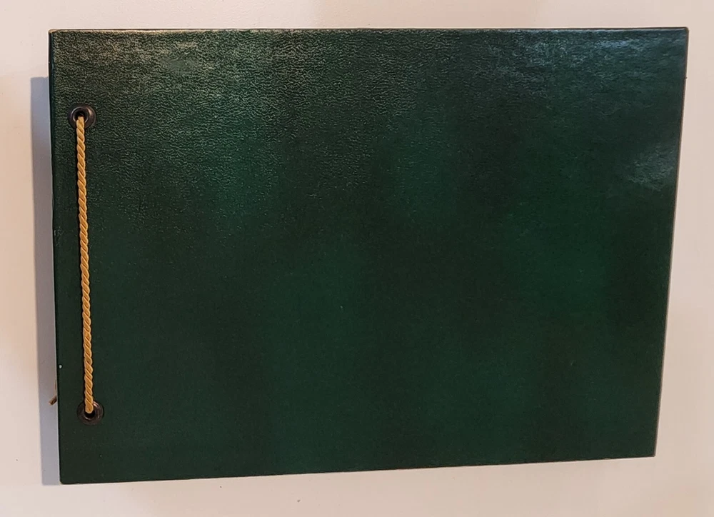 This vintage photograph album is a perfect addition to any collection. The leatherette cover gives it a unique and timeless look. The pages are ready to be filled with beautiful memories and special moments. It's a great choice for anyone who loves scrapbooks or wants to add some vintage charm to their collection. The album measures 10 inches in width and 7 inches in height. It's perfect for storing and displaying your favorite memories. Whether you're a collector or just looking for a unique way to store your photos, cards or any paper memorabilia, this album is sure to impress. There is light wear from age, mostly the tips of the corners. Please look at photos carefully as they are part of my description. There are 39 pages included in this scrapbook.