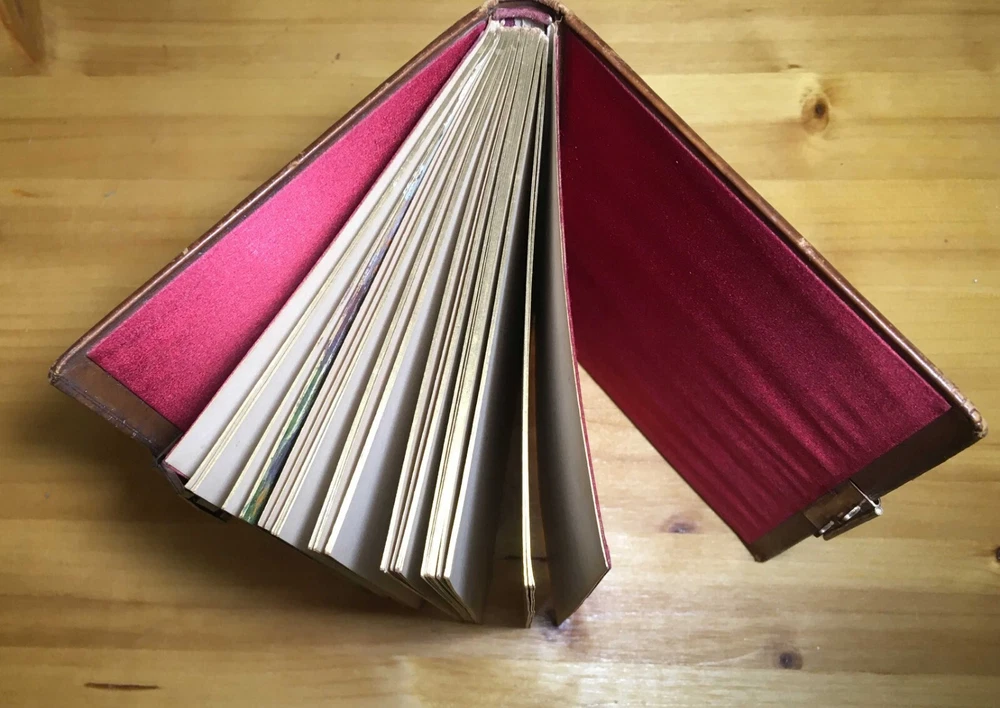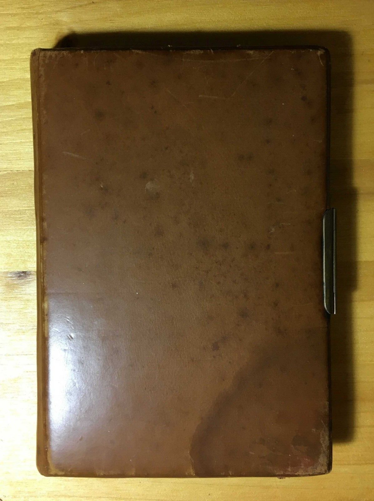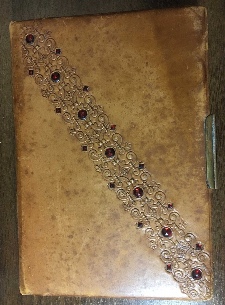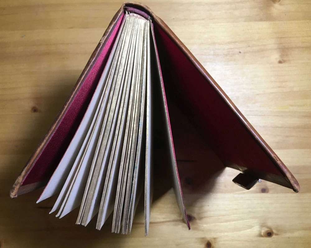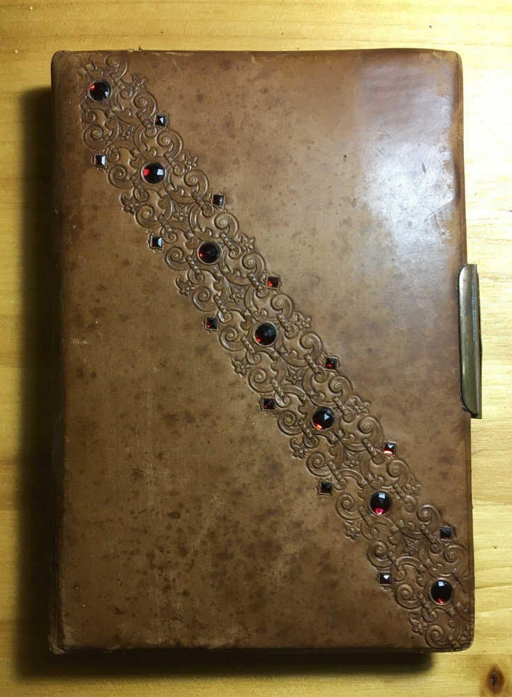 Vintage Old Unique 19th Century French Leather Diary Journal with lock (not working) about 56 empty pages or 112 front and back and 12 pages with manuscripts and paintings