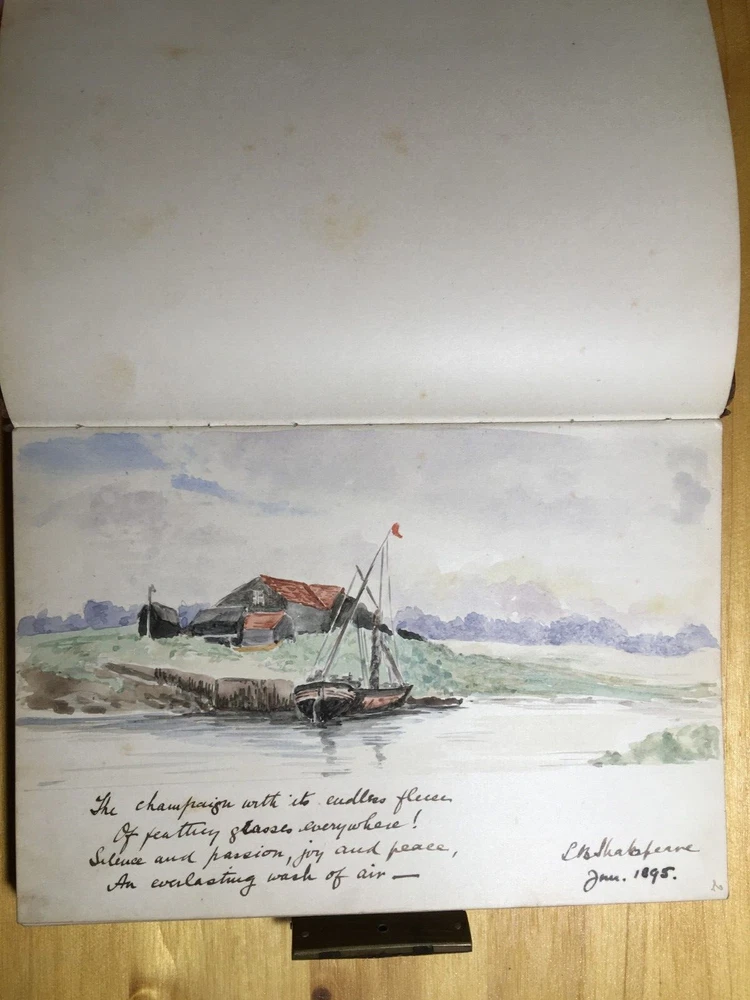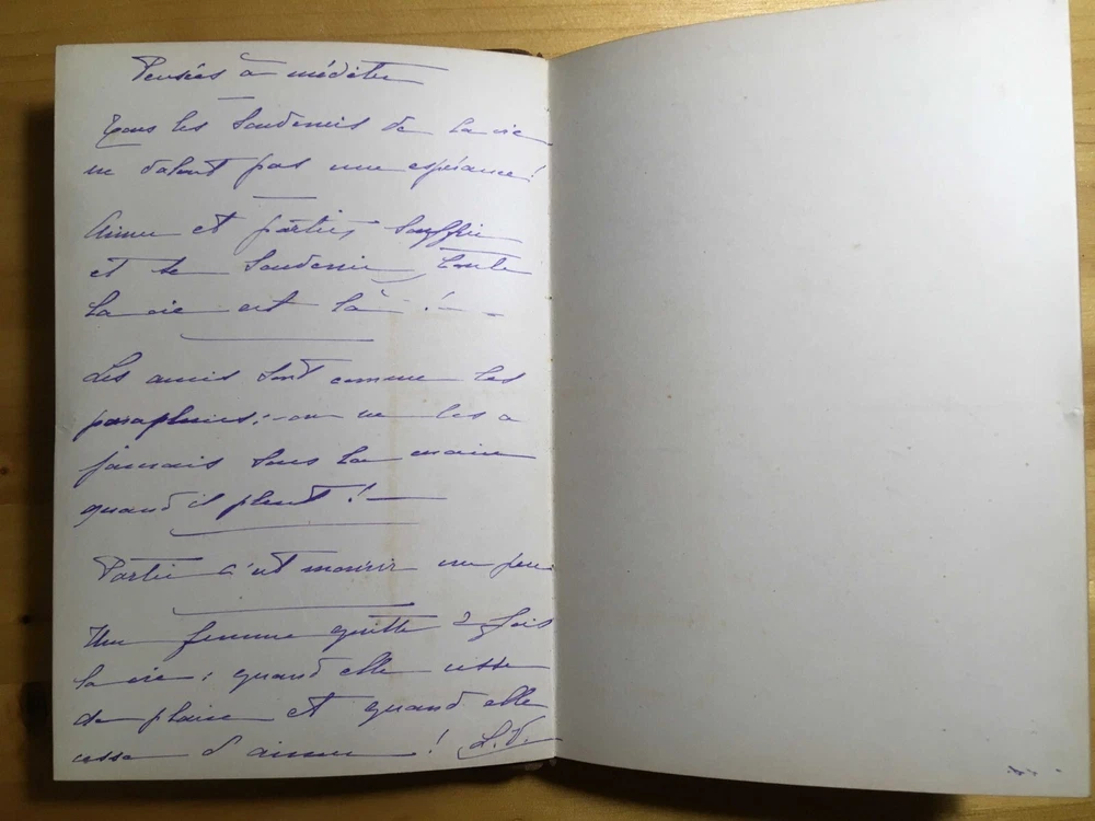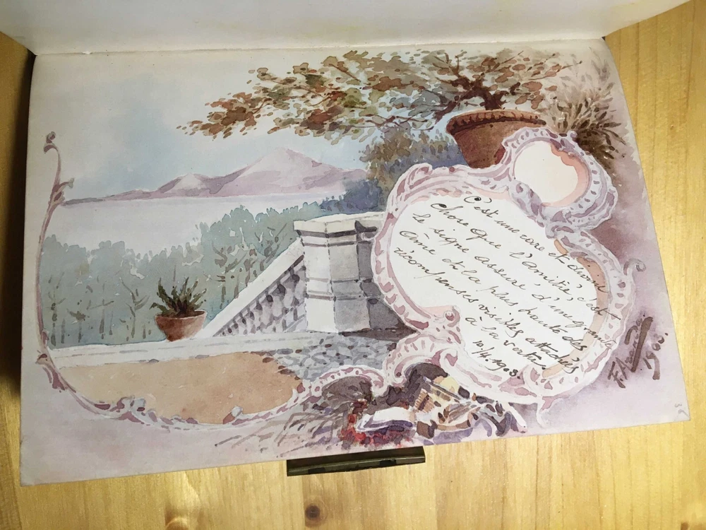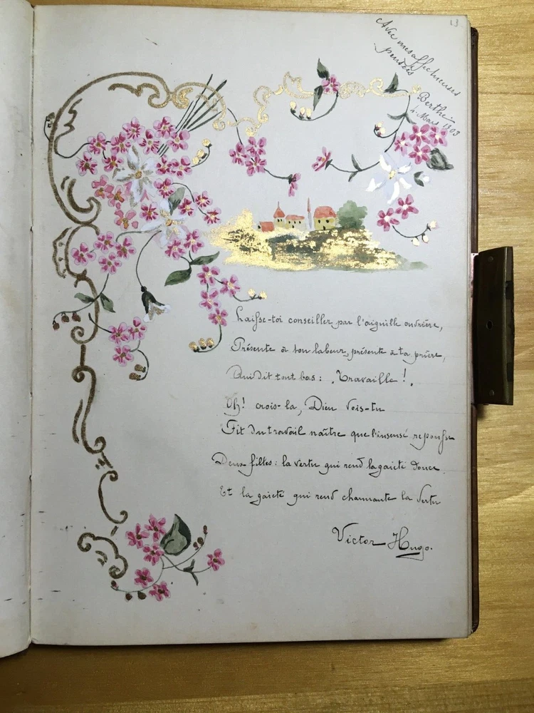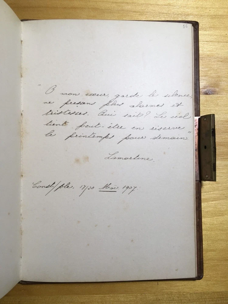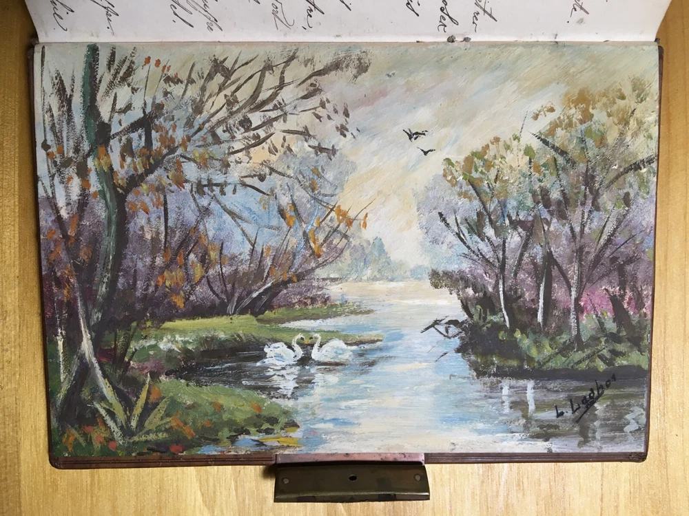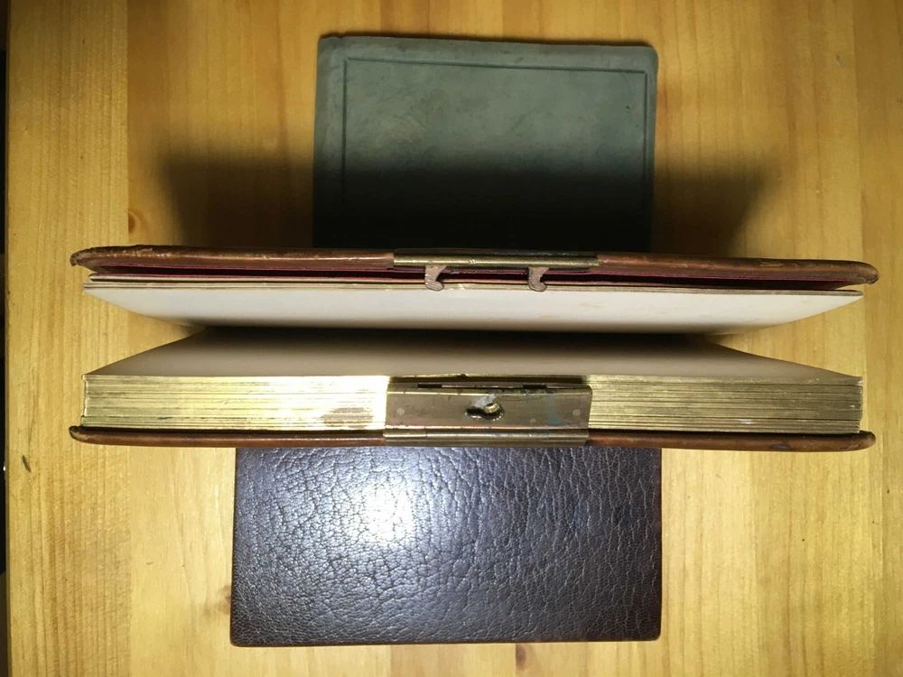 Vintage Old Unique 19th Century French Leather Diary Journal with lock (not working) about 56 empty pages or 112 front and back and 12 pages with manuscripts and paintings...