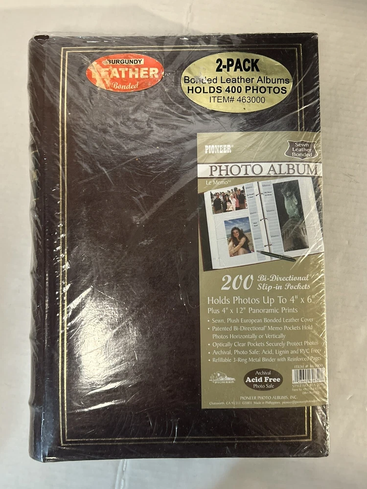 This set of two vintage Pioneer leather photo albums is the perfect addition to any photography enthusiast's collection. Each album is designed to hold up to 400 photos in a 4x6 format, and features a beautiful burgundy color that adds a touch of sophistication to any room. The albums are slip-in bound and made from high-quality leather material, ensuring that they will last for years to come. These albums are perfect for anyone who wants to showcase their photos in a stylish and timeless way. The vintage theme adds a touch of nostalgia to the design, while the durable construction ensures that your photos will be safe and secure for years to come. Whether you're a professional photographer or just someone who loves to take pictures, these albums are sure to impress.