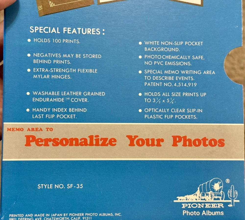 This vintage Pioneer SF-35 Le Memo Photo Album is a must-have for any photography enthusiast. The album features 100 memo flip pockets, perfect for storing your precious memories. The book-bound format and faux leather material give it a unique and classy look, while the white / cream color adds a touch of elegance. This slip-in album is ideal for anyone who wants to keep their photos safe and organized. The maximum photo size of 3.5 x 5.25 inches ensures that your memories are captured in high quality. Made in Japan, this album is a true vintage find for any collector. Packaging States - Special Features : - Holds 100 prints - Negatives may be stored behind prints - Extra strength flexible mylar hinges - Washable leather grained endurahide cover - Handy index behind last flip pocket - White non slip pocket background - Photochemically safe, no pvc emissions - Special memo writing area to describe events - Holds all size prints up to 3 1/2 x 5 1/4 - Optically clear slip in plastic flip pockets Will answer questions about item to the best of my knowledge. Will package very secure for shipment. Thanks for looking!