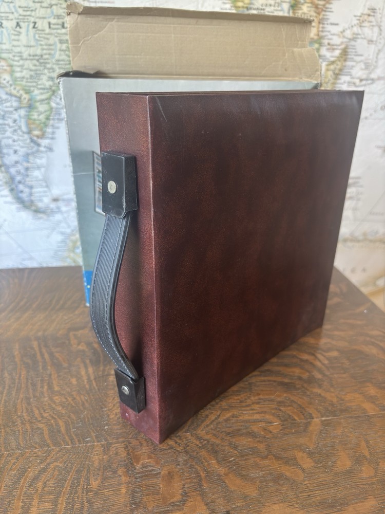 This Vintage Retro Brown Photo Album features a bifold design with 200 slots for 3.5" x 5" photos, making it perfect for storing memories and snapshots. The album is book bound and adorned with gold trim for a classic and elegant look. Crafted from faux leather, this album exudes a vintage charm and would be a stylish addition to any collection.