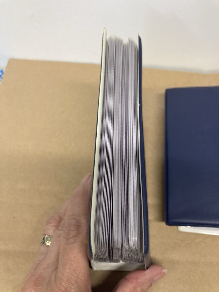 This Vintage Small Blue Photo Album 5x7 is a charming set of two albums, each with 50 clear pages that can hold up to 100 pictures. The faux leather material and blue color give it a timeless and classic look, perfect for various occasions such as baby showers, weddings, and new year celebrations. With a size of 5x7 inches, this album is great for storing and displaying your favorite photos in a stylish and organized manner. It's a perfect gift for family members and friends who love to capture special moments in time.