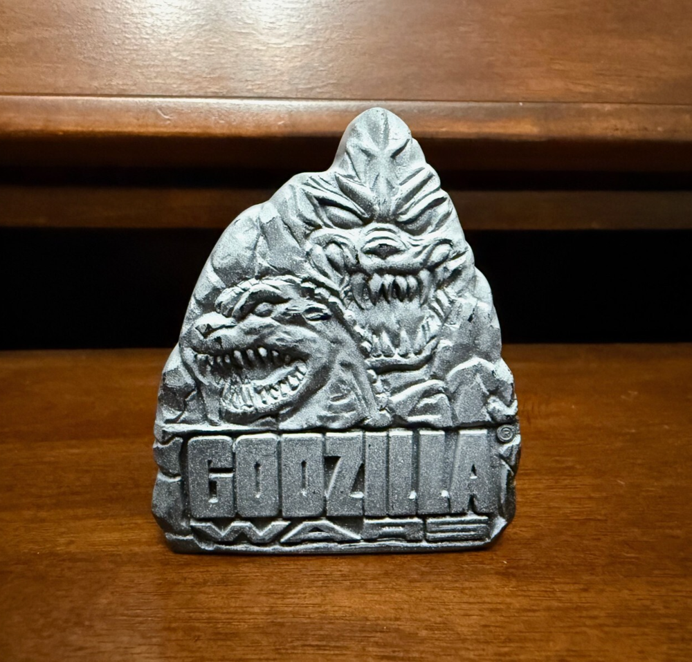 From 1995, here is one of the true Godzilla Trendmaster rarities--a very rare series of figures that year was the "Collectible Monster With Mountain Case," or, as the dealer catalog called it, the "Micro Mountain Case," which was included with a 2-inch monster figurine. This series of 6 had low-to-no distribution and is impossible to find. Up for auction here is one of those mega-rare Mountain Cases! Case is super-clean and in excellent condition, please see photos! Don't miss this chance to add this gem to your Godzilla collection today! Shipping is FREE to anywhere in the lower-48 USA. From smoke-free, pet-free home. PLEASE NOTE: Auction is open to US RESIDENTS ONLY. Please do not email me and ask if I can ship to foreign countries, because I am not doing any international or air mail shipping at this time. Thanks for looking--please check out my other auctions--lots of other vintage collectibles up this week!