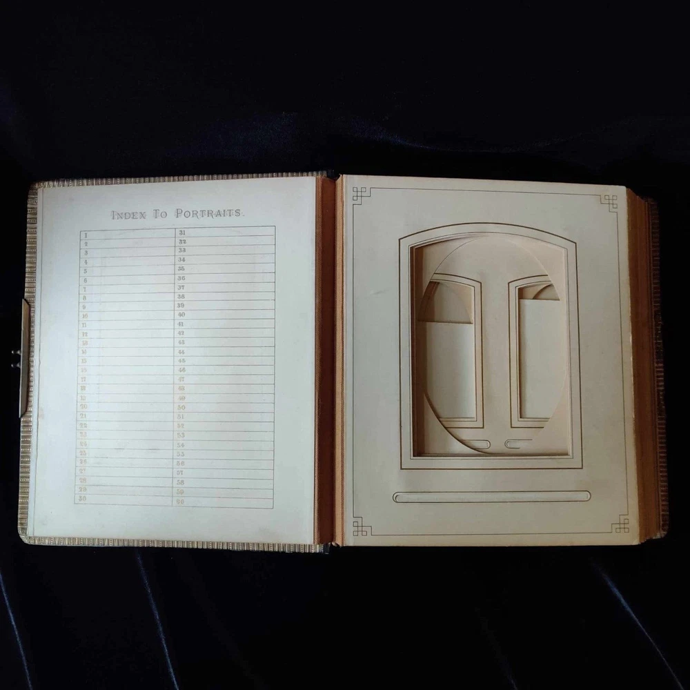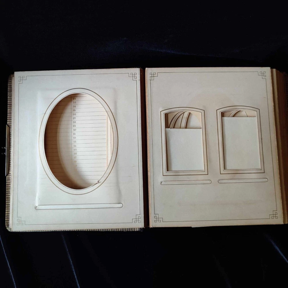 This listing is for a vintage, (faux?) leatherbound Victorian photo album! It has been well loved as you can tell from the outside covers, edges, and spine (please look at all photos prior to purchasing). It has stunning gold edges for the papers and the photo pages themselves are in pretty great condition! Just the color is a little aged. The index at the front of book has been unwritten on and I didn't notice any writing on any of the photo pages. (Though I do apologize if I missed anything.) The main damage, arguably, is the broken off latch that was on the side of the album to keep it closed (see image #9 for close up). It stays closed on it's own though while standing or laying down though, of course. Measurements: Book- 9in Tall 8" Deep 2 1/4" Wide Photos: (These maybe be a hair off, but I did my best to figure it out.) 4" x 6" and 3 1/2" x 2 1/4" Thank you for looking! If you like interesting, vintage pieces, be sure to check out the other items in my shop! ♡