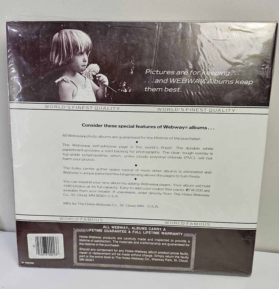 Vintage Webway's Scrapbook Photo Album Blue Gold New W-200 W/ Self Stick Pages This album has 5 - 2 sided double sitck pages so 10 pages to follow with pictures or memorabilia. This album can be added to with other pages if you find them separately. It's in new never used condition, still has the cellophane wrap. (S4R4)
