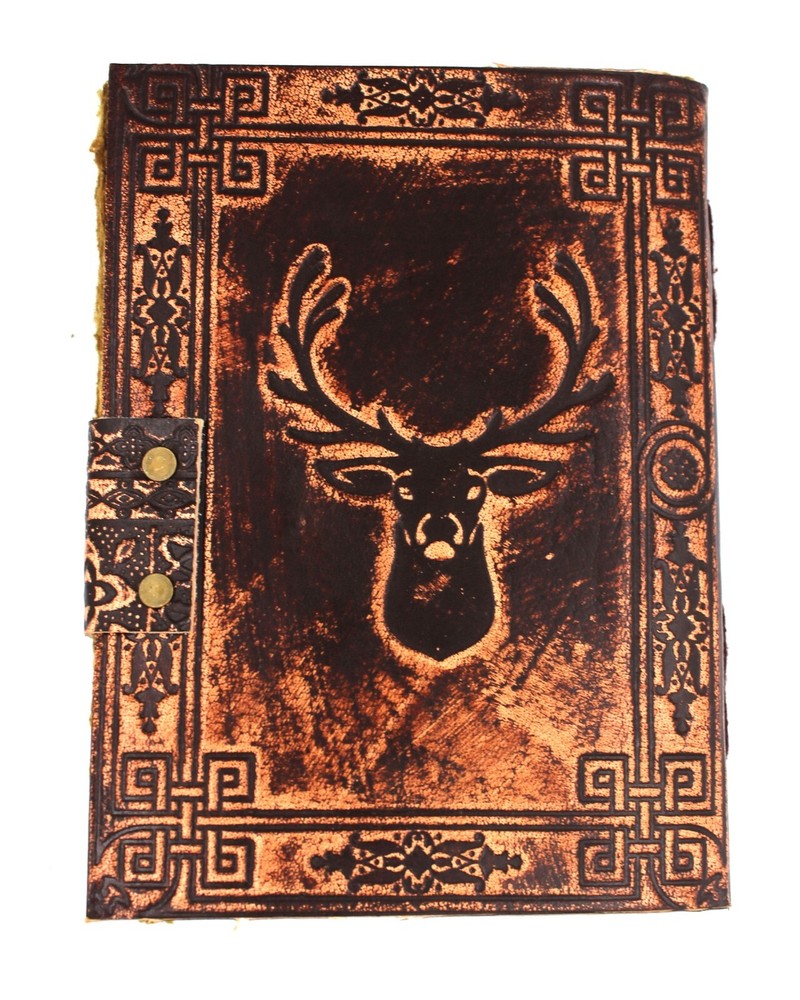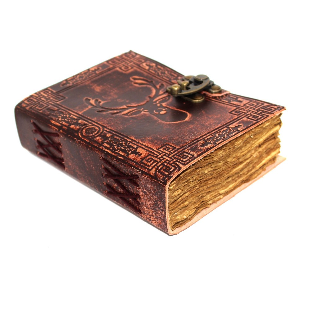Vintage Brown Leather Deer Embossed Antique Paper Notebook Diary Sketchbook S08