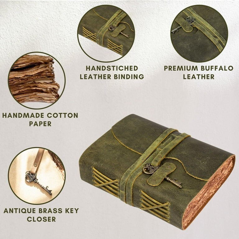 Handmade Vintage Leather Journal Handmade Plain Paper Leather Journal Cover A4/A5/A6 Notebooks Sketchbook Diary Writing Pads leather sketchbook, leather journal, leather notebook, travel journal, personalized journal, sketchbook cover, leather diary, refillable journal, journal, writing journal, gift for artist, notebook cover, custom sketchbook, sketchbook, book of shadows, vintage journal, handmade journal, handmade sketchbook, gift for her, personalized, notebook, Christmas gift, gift for him, mothers day gift, a5 notebook cover, refillable notebook, sketch book, personalized gift, handmade notebook, personalized leather, journal cover, bound journal, artist sketchbook, large sketchbook, travel diary, travel notebook, sketch pad cover, custom, artist gifts, personalized gifts, grimoir journal, sketchbook case, gift for writer, drawing sketchbook, journal notebook, watercolor journal, custom journal, custom notebook, leather planner, monogrammed journal, engraved journal, leather sketch book, leather art book, fathers day gift, for men ✦ Leather – Soft Supple Genuine Leather with Best Quality ✦ Soft Natural Handmade Leather Cover ✦ Lock - Best key ✦ Color - Dark Brown (Green)(Black)(Brown) ✦ Paper - Handmade Antique Paper ✦ Size - Custom (in inches) ✦ Pages - 200 Pages Both Size
