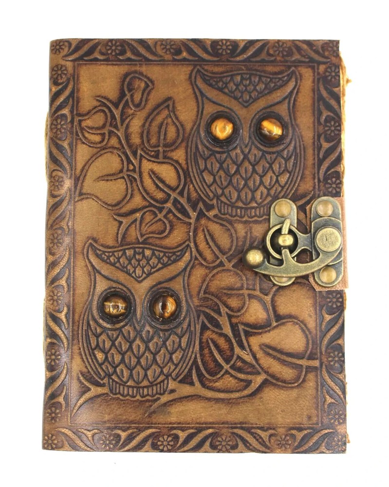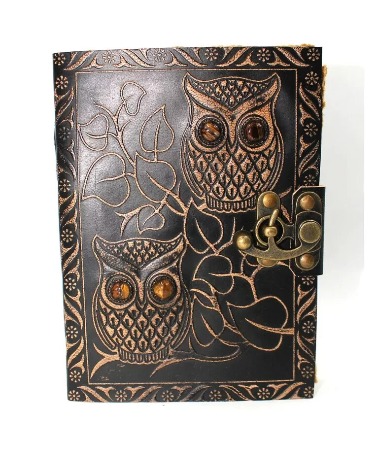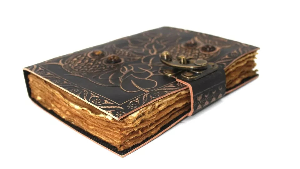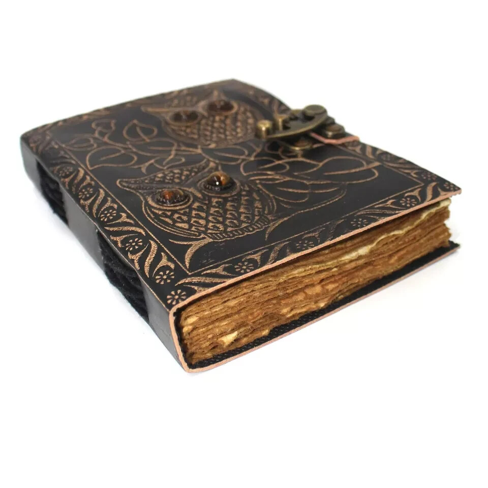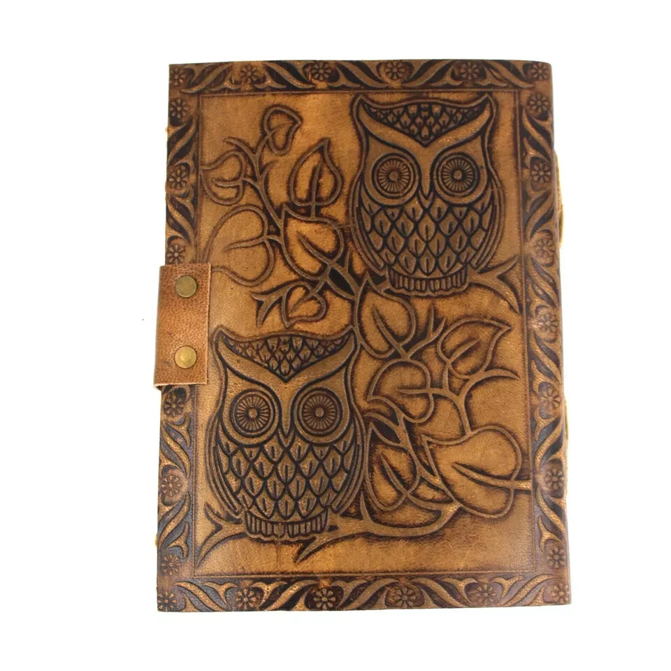 Vintage Leather Bound Owl Journal Antique Paper Notebook Sketchbook Diary Brown