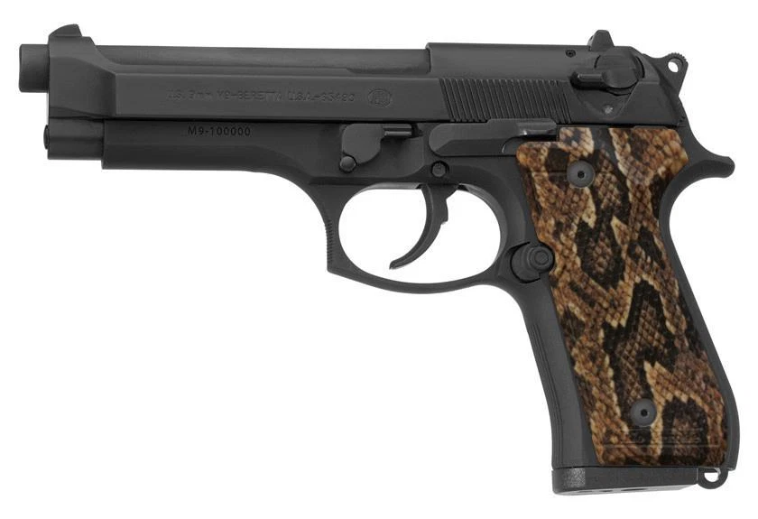 Be Happy, Go Shooting! Home About Us Shipping Returns Contact Us MENU Store Pages Home About Us Shipping Returns Contact Us Store Categories Apparel Bags & Packs Gloves Handgun Accessories Holsters & Conceal Wear Lights & Lasers Rifle Accessories Scopes, Optics, Mounts & Rings Shotgun Accessories Tactical Vests & Plate Carriers Shop by Category Apparel Bags & Packs Gloves Handgun Accessories Holsters & Conceal Wear Lights & Lasers Rifle Accessories Scopes, Optics, Mounts & Rings Shotgun Accessories Tactical Vests & Plate Carriers Store Newsletter Sign up to receive special insider notifications of deals, promotions, and new items! JOIN NOW Proudly USA Owned & Operated Satisfaction Guaranteed Click Thumbnails to Enlarge Product Description Congratulations! You’ve Found the Best Looking Custom Beretta 92 Grips on the Planet! Give your Beretta an awesome personalized custom look! These grips fit the Beretta 92, 92FS, 92A1, 96, M9, and M9A1. These grips DO NOT FIT the Vertec, compact, 92X, 90Two, or the M9A3 models. They also do NOT fit the 92S or other variants with the magazine release button on the bottom of the grip. They also will NOT fit the Taurus PT92 or PT96. Each grip begins life as an injection molded high strength polymer blank made from a carefully engineered mold designed to fit the Beretta 92 exactly. It is then custom printed using a unique, proprietary process for full color, full wrap coverage around the grip. Our unique process is kind of like a tattoo, the ink is infused into the polymer itself. This results in an incredibly durable design that will not wear off and is extremely difficult to scratch through (in fact you'd have to scratch through 2 mm of material to scratch all the way through the image). All of the Beretta 92 grips are compatible with ambidextrous safety and incorporate the RioGrip texture. RioGrip is a series of recessed ovals that provide a grip with more bite than smooth grips, but without the sharp edges, like checkering, that can snag on clothing. Our Beretta 92 Grips are: 100% designed and manufactured in the USA. Custom designed and manufactured for this specific firearm for an OEM quality fit and finish Premium full coverage, full color design Sleek contour and very comfortable Made of high strength molded polymer for toughness and durability Salt, oil, solvents, water, impact, and abrasion resistant. You'd have to scratch through 2mm of material to scratch through the image Image is integrated into the polymer - not a backing covered by acrylic Matte finish Lightweight: 1.7 oz. Easy to install (screws are not included - the OEM screws that came with your Beretta 92 will work just fine with these grips) NOTE: These are NOT real snake skin. They are polymer grips with a snake skin graphic design imprinted into the polymer itself. These are made to order, so be patient. We'll get them sent out as quickly as possible (usually about 2 days). Got an idea you'd like to see on a grip? We can also do full custom designs as well! Payment Policy Accepted Payment Methods We accept PayPal. You can use Visa, Mastercard, American Express, or Discover or your own PayPal balance to make your payment through PayPal. You can also use PayPal without having a PayPal account. So no worries there. Refunds Policy If you need to return an item for refund, (see Returns Policy) your payment will be refunded via PayPal. Refunds usually take 3-5 days to clear and show up on your credit card or bank account. Shipping Policy Shipping Policy We know you want your item and we will get it sent to you as fast as we possibly can. Generally we ship within 24-48 hours (business days) after payment, unless stated otherwise in the listing. We ship USPS/UPS/FedEx depending on the item and your location. We take great care packaging every item to ensure safe quality shipping. Please make sure to provide the correct shipping address when placing your order, orders will be shipped out to the shipping address provided by eBay. Packages are not shipped on Saturday, Sunday, or Holidays. Transit time varies and depends on the carrier. As much as we'd like to we can't control USPS, UPS, or FedEx, or make them go any faster. Backorders Some of our items ship directly from the manufacturer and on rare occasions may be on back-order with them. If your item is on back order you will be notified immediately and given the option to keep the order open or have it refunded. Returns Policy Easy!!! We make it easy and painless to return an item. If you don't like it for whatever reason, send it back within 30 days for a full refund (unless stated otherwise in the listing). All returns must be in new, original condition and must include the original packaging, tags, and all content intact. Please be sure to pack the item properly to avoid damage. The easiest way to return an item is through eBay's Managed Returns which you will find in your Purchase History in the drop down menu to the right of your item. You can also contact our Customer Support directly via eBay Messages and you will be assigned an RMA number and instructions on how to proceed with your return. Please allow 3-5 business days after we receive your package to process your return. Contact Us Once you've paid, we believe you've done your part so you'll be getting positive feedback from us. We truly believe in great customer service. Our goal is 100% 5 star positive feedback from our customers. If, for any reason you feel we haven't earned it, please contact us and let us know how we can fix it BEFORE leaving neutral or negative feedback. Leaving neutral or negative feedback doesn't solve your problem, and it harms our business. We promise we'll do whatever we can to treat you right and make sure you're taken care of, so please contact us. International Orders We cannot ship firearms accessories or parts internationally due to U.S. regulations. Unfortunately there are no exceptions. All of our non-firearms parts and accessories (packs, glo