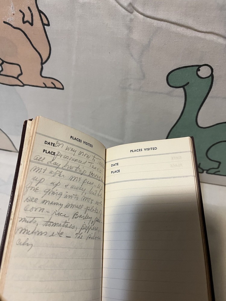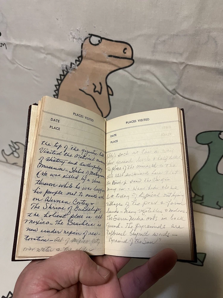 Great find. Several entries and then lots of blank pages. Travel written about seems to be mostly in Mexico. Dated 1975. Small booklet. Back is marked Made in England....