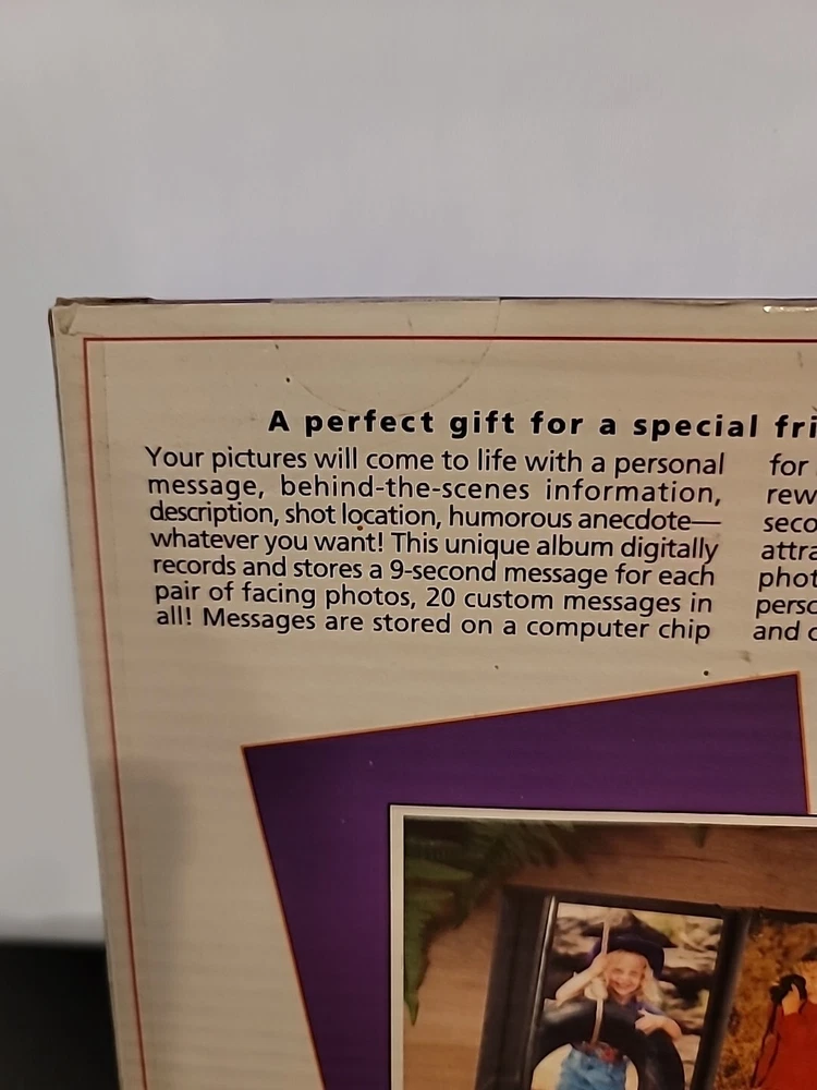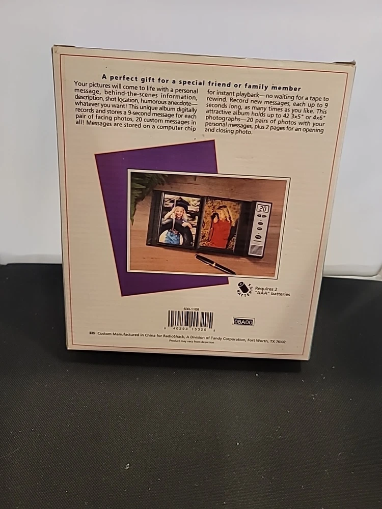 This Voice Recording Photo Album by Radio Shack is a must-have for any photography enthusiast. With its innovative design, you can now relive your cherished memories through both sight and sound. The album is brand new in its original packaging, ready to be gifted or kept for yourself. Featuring a sleek and modern design, this photo album is perfect for storing and displaying your favorite photos. Its durable construction ensures that your memories will be safe and secure for years to come. Plus, with its easy-to-use voice recording feature, you can add a personal touch to your photos and share your stories with loved ones.