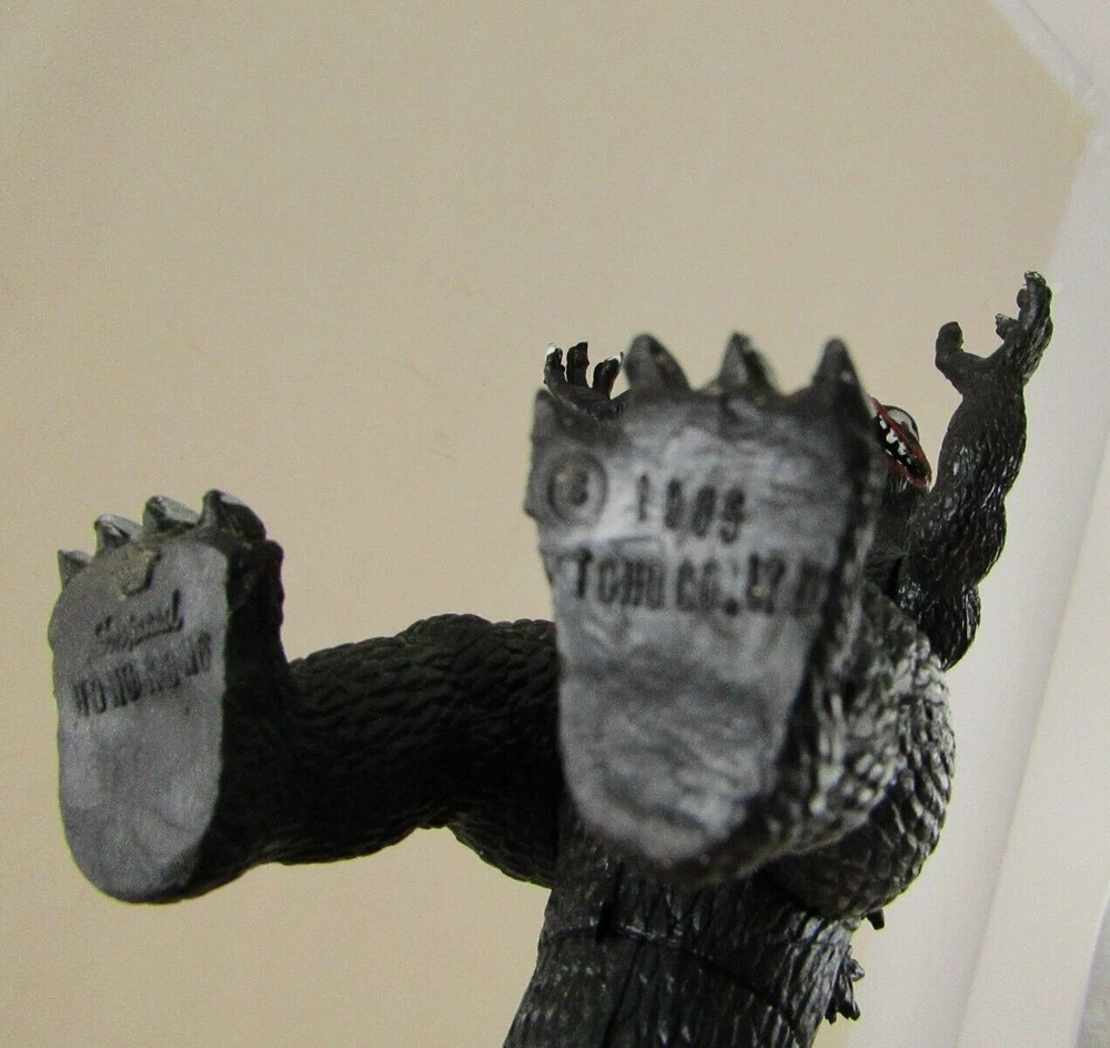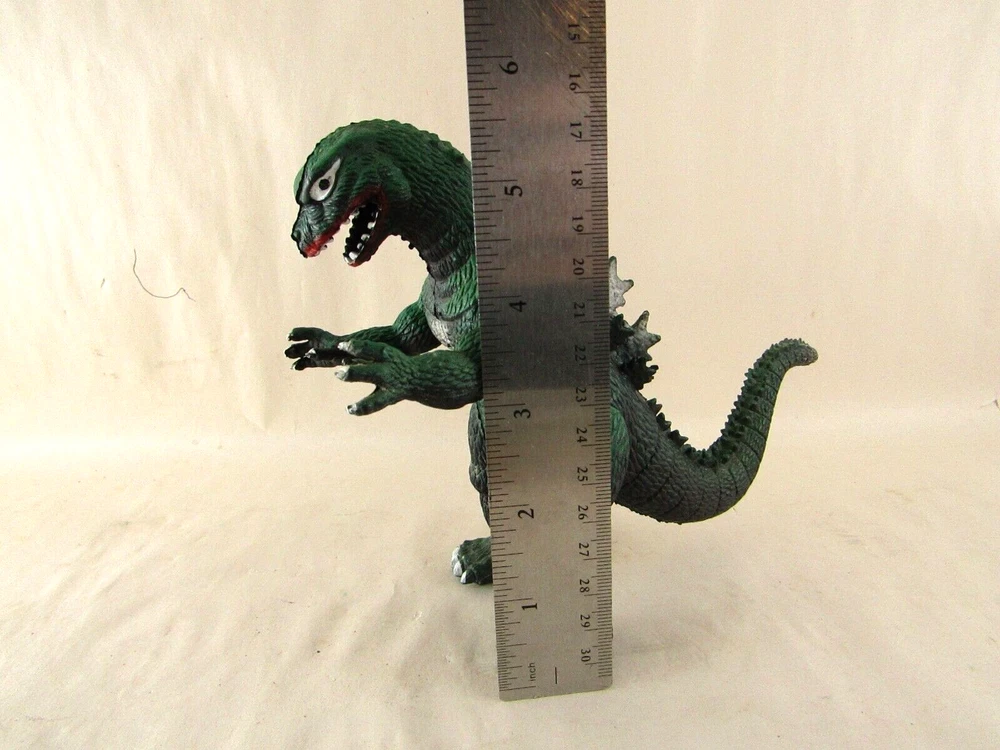 Imperial TOHO 1985 Godzilla. 5 1/2 inches tall . There are scuffs and paint ware to body, head and toes.