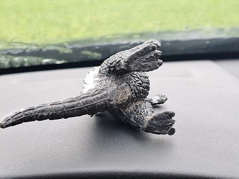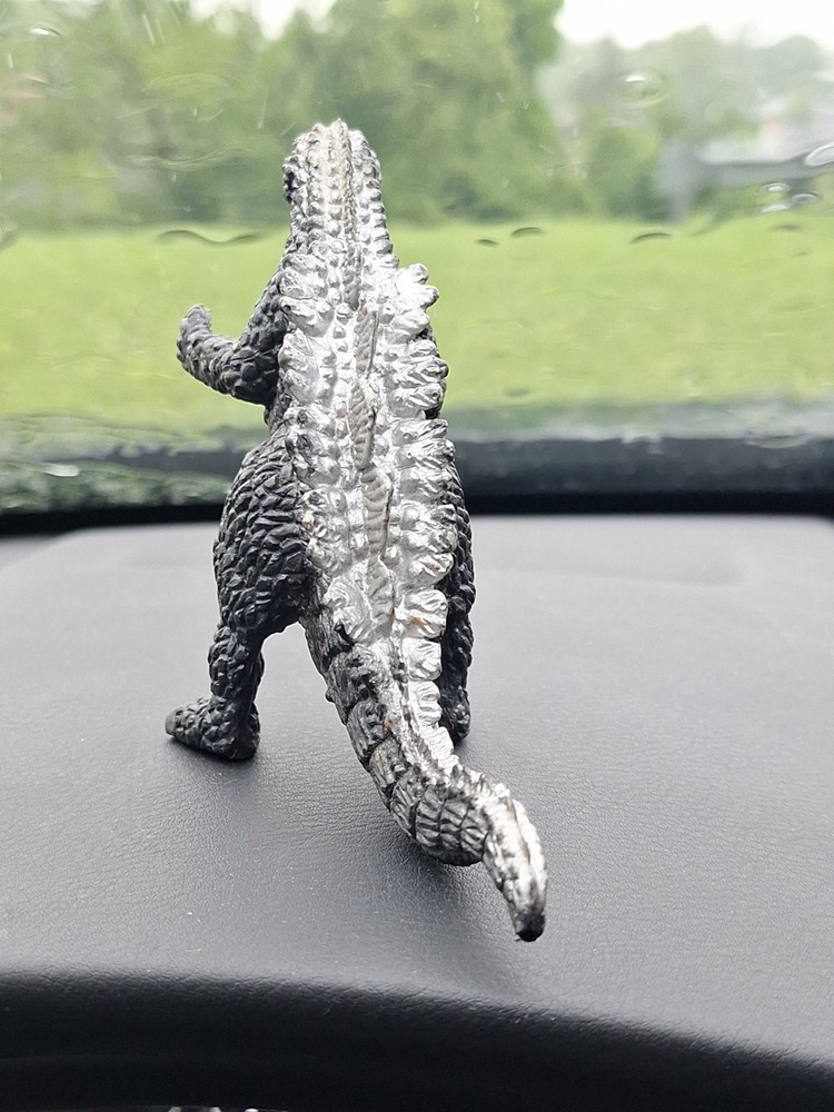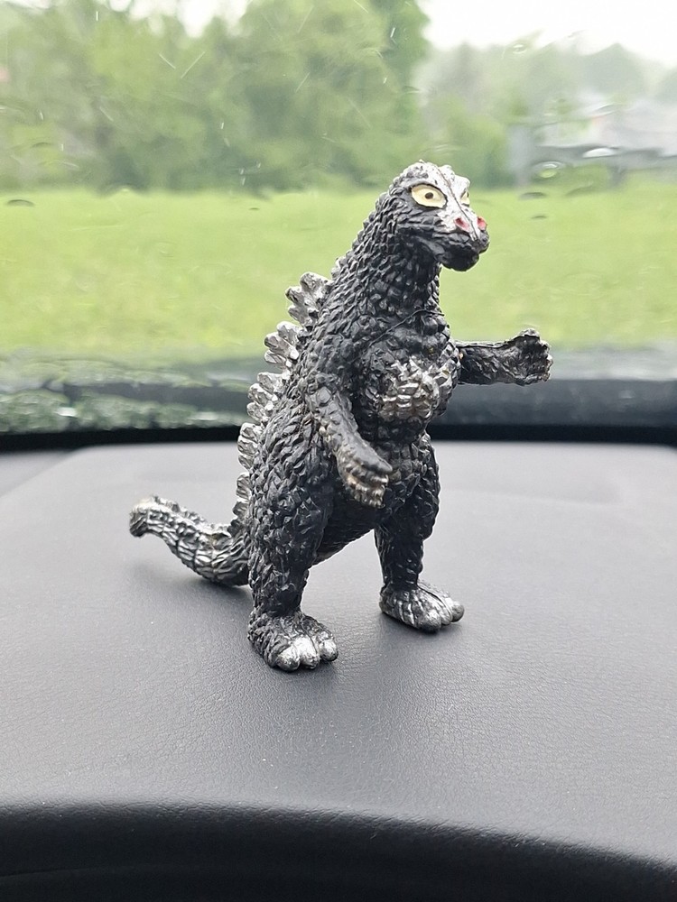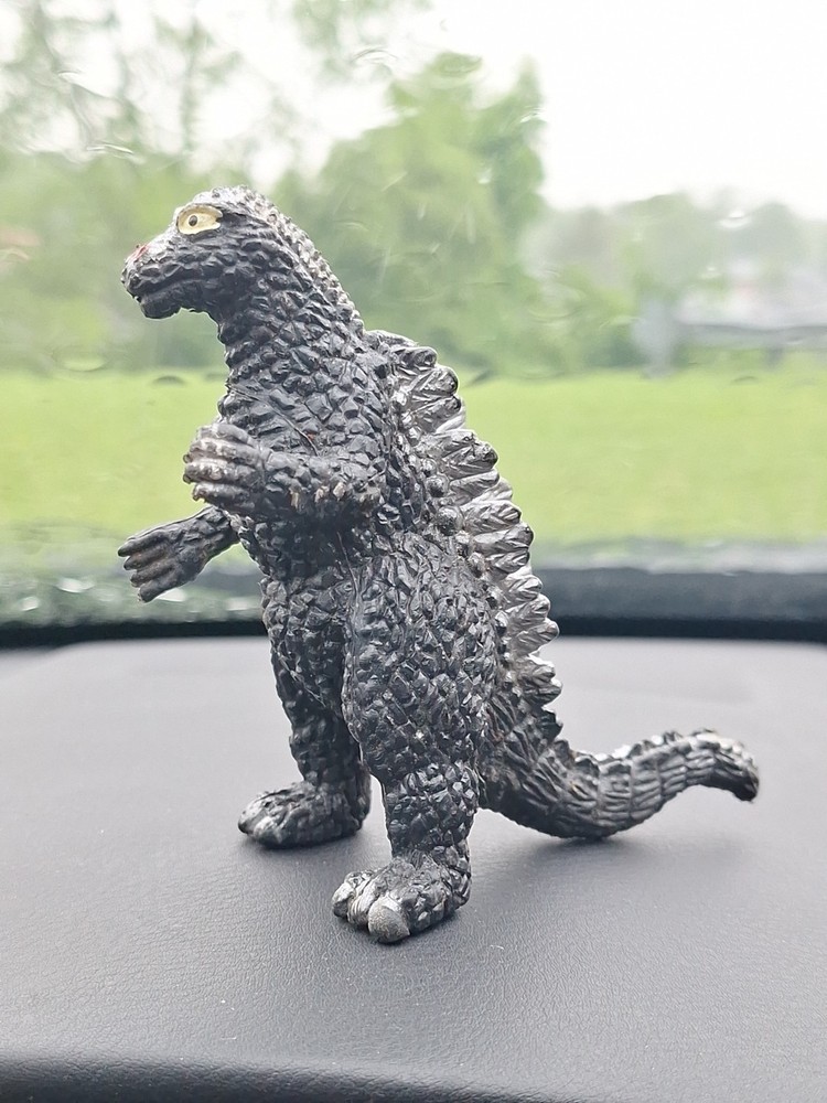 This vintage Godzilla monster figure is a must-have for any collector of classic memorabilia. Made in China in the 1980s, this PVC plastic figure stands at 4 inches tall and features a sleek black and silver design. The figure depicts the iconic monster in all its glory, making it a perfect addition to any franchise collection. The brand is unknown, adding to its intrigue and allure. The figure is in excellent shape, with no signs of wear or damage. It's a great piece for display or play, and will make a fantastic addition to any collection. Don't miss out on the chance to own this unique piece of monster history.