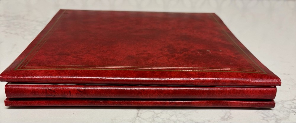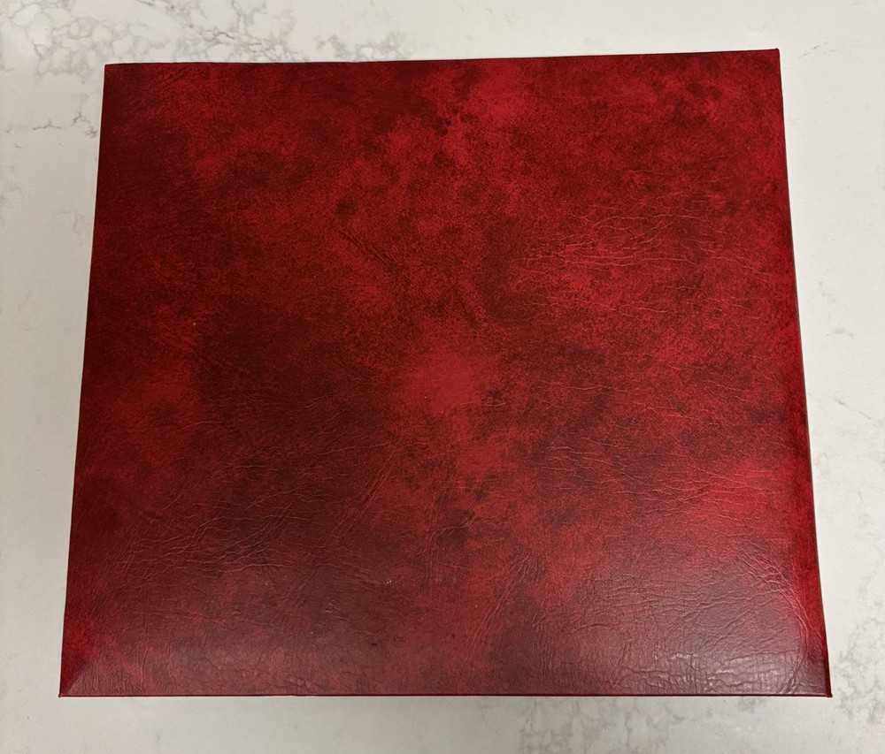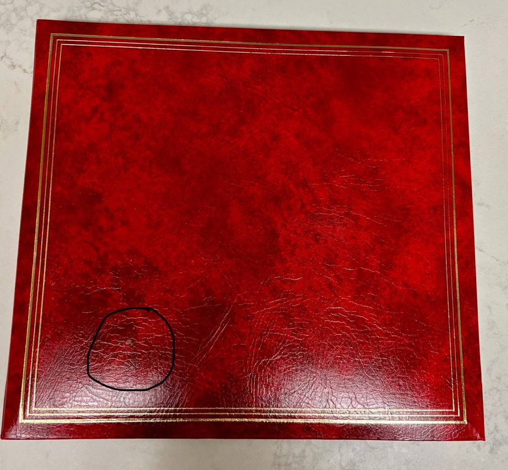 This photo album will currently accommodate 104 photos but is refillable. The album measures 10.5”x9.5”x1”. Please note: There are a few small discolorations on the cover and two of the photo pages ha...