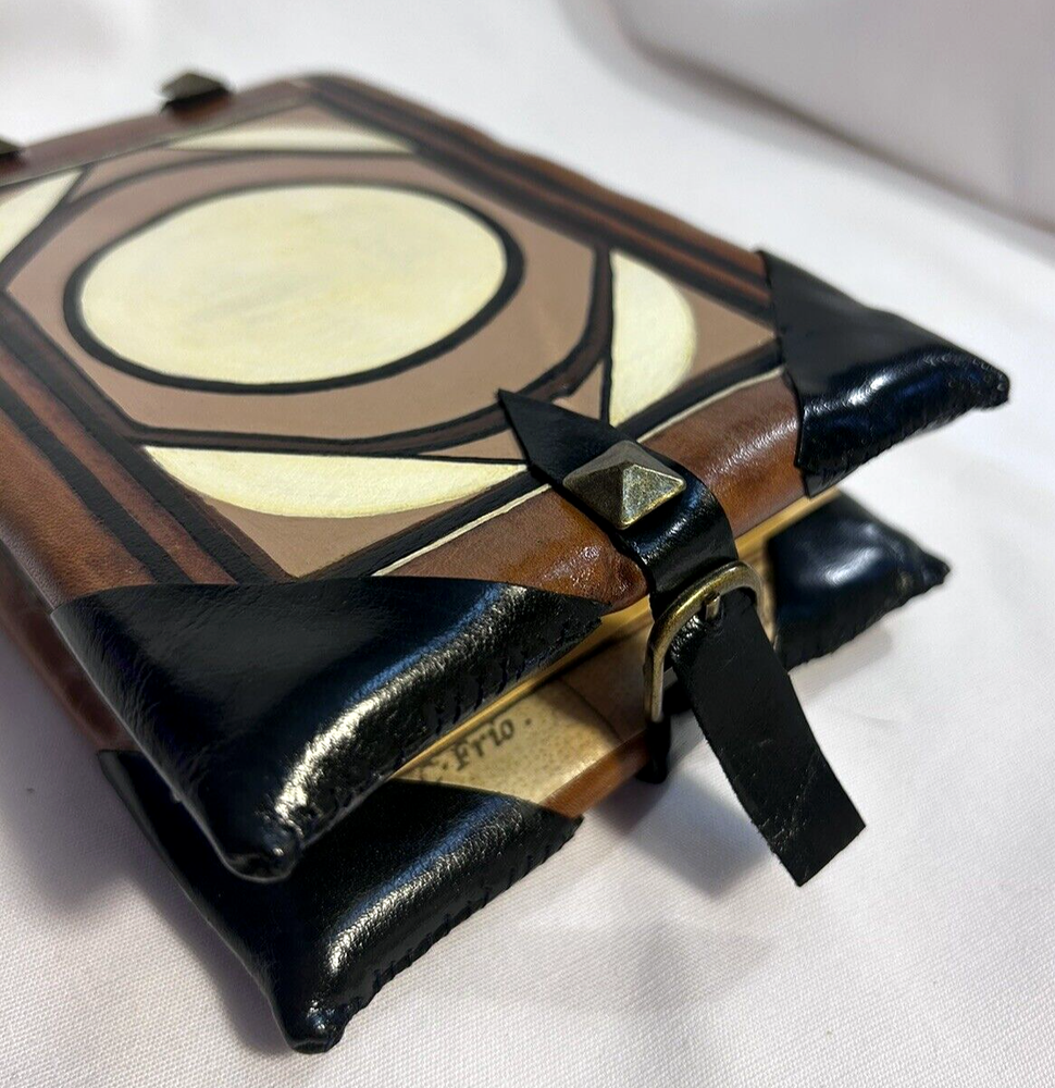 World Map Traveler's Leather Journal/Notebook 134 pages Various blank, lined, and map themed pages, including a secret envelope for covert notes! All pages are aged for an authentic vintage feel and aesthetic Handmade Leather Hardcover and Handsewn Binding 7" Tall x 8" Wide Genuine Leather with vegetable dye Leather strap and buckle closure The World Map Traveler's Leather Journal feels like an undiscovered treasure left over from the likes of Indiana Jones' adventures! The aged pages maintain the durability of "new" while lending the enchanting aesthetic of an "ancient" historical text. With 134 blank and cartography themed pages, this journal is ready to inspire the academic observations and awe-inspiring anecdotes of a life worth living! #SSLB0004 This item is certified One Of A Kind Safar Studios Safar Studios' products are handcrafted in the United States by Natasha Safar with the utmost care and attention to detail. She has been making art and expanding her sales in shops throughout the East Coast , and Mokarran is pleased to be able to offer works from her collection exclusively online. Custom art pieces available upon request CUSTOM ART COMMISSIONS: If you wish to commission a custom piece of art, please contact us with your requests. We will work with you to get all the details right and have Ms. Safar provide you with any designs for approval. We will provide you with details pertaining to cost, time-frames, etc. for your approval. Upon completion of your custom piece(s), we will contact you to work out a convenient time for us to post the item(s) on eBay for the agreed upon cost (a fixed price listing). WE WILL ONLY SELL THROUGH EBAY AT THIS TIME. We apologize for any inconvenience this may present, but that way the sale is covered under both Buyer and Seller Protections. PAYMENT : Payment is requested and expected within three (3) days of the close of the auction/listing (post purchase-date), unless you have contacted us and other arrangements have been made. We ship most items within one (1) day of receiving cleared payment. RETURNS : If you are not 100% satisfied with your purchase, please contact us within 30 days of receiving your item(s). Upon receiving your return, we will issue a full refund of the purchase price (original price + original shipping). In most cases, you, the buyer will be responsible for any return shipping costs. INTERNATIONAL SHIPPING: We ship internationally, but please check the shipping price and service offered prior to bidding or purchasing. We use calculated shipping based upon your location and the weight of the package, which is provided by eBay’s Shipping Calculator. The shipping price you see in the listing is eBay’s calculation for the cost of shipping directly to you; that price does not include any taxes, tariffs, or customs charges that may be incurred at your end. We have no way of calculating taxes, tariffs, or customs duties; they are your responsibility to pay in addition to shipping charges. For more information or details please contact your local post office. Please contact us with any other questions regarding shipping internationally. COMBINED SHIPPING: Whenever possible we combine shipping to save you money. To ensure you get accurate combined shipping, you can request a combined invoice. Please wait until we have sent you an invoice through eBay/PayPal before you pay for items that you wish to have shipped together to ensure accuracy of pricing. ADDITIONAL PICTURES POLICY: Please contact us if you would like to see more pictures of any of the items we have in stock. We strive to give you the best possible representation of the actual item available for purchase; however, we do use stock photos provided by suppliers for many of our items. If you would like more detailed pictures in general or pictures of specific details of an item, please let us know.