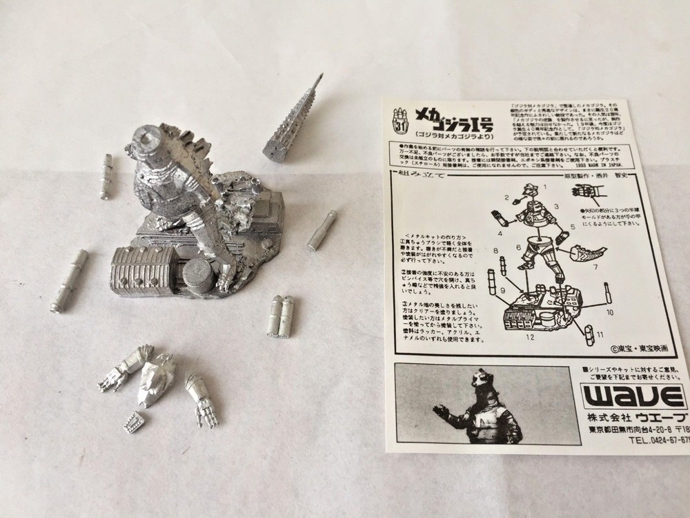 Wave # 41 Mechagodzilla 2 Diorama Set (Metal Figure). Requires assembly and painting. When finished, most of Wave's metal figurine kits stand about 2 inches tall. These Wave's metal figure kits have been discontinued a long time ago and now super rare to find. Once sold, it will be gone forever!!