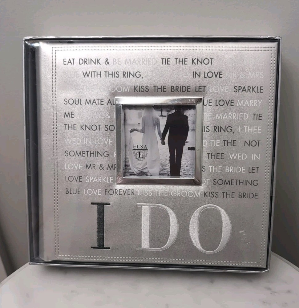 The Wedding I Do Photo Album by Elsa is a stylish and elegant way to preserve memories from your special day. This silver album can hold up to 160 4"X6" photos and measures 9"X9", making it a perfect size to showcase all your cherished moments. Its sleek design and durable construction make it a timeless keepsake for you to treasure forever. This comes in a silver box with a clear film over it. New!!! ❤️ Holds 160 Photos ❤️Fits 4 inch by 6 inch photos ❤️Acid Free Photo Pockets ❤️Book Bound Paper Memo Pages ❤️Non Refillable This would make a wonderful wedding gift keepsake.