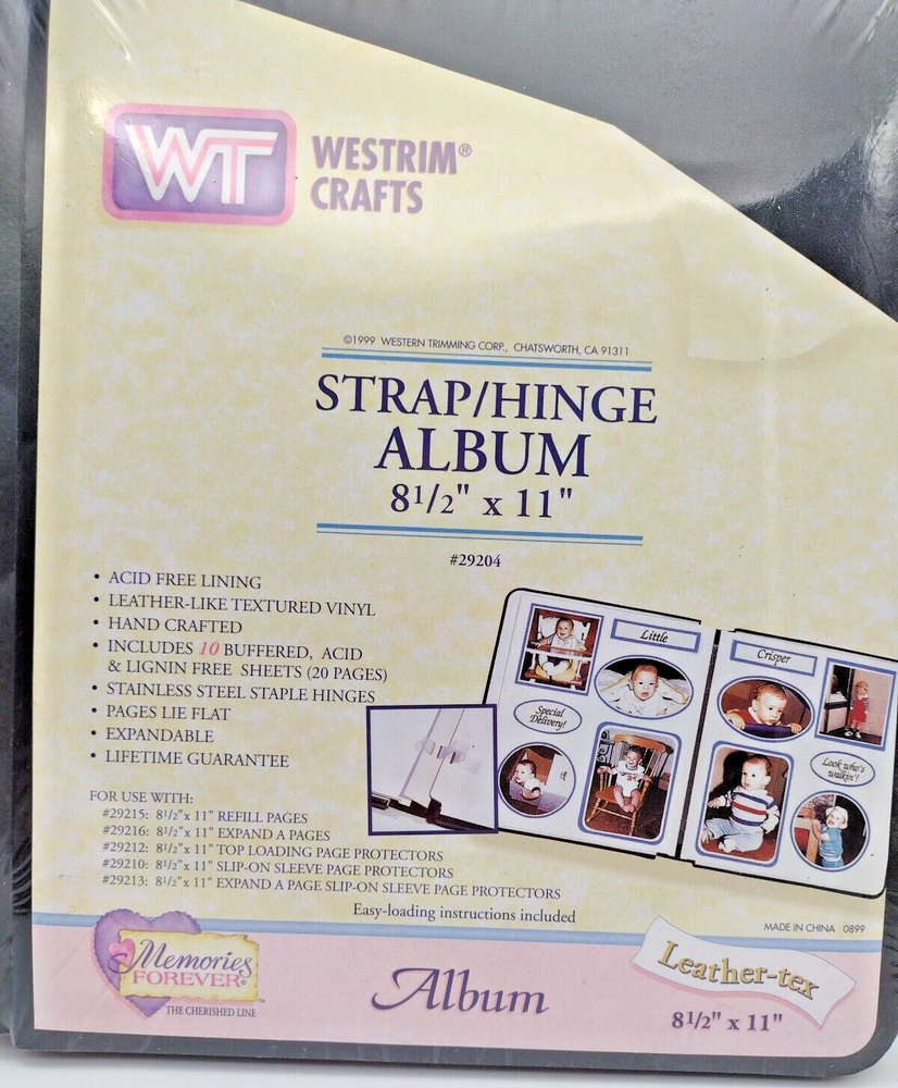 Westrim Crafts 8 1/2” x 11” Strap Hinge Album Leather-tex 1999 Black New 29204 Vintage new old stock . New sealed. Price is per album Look at pics...