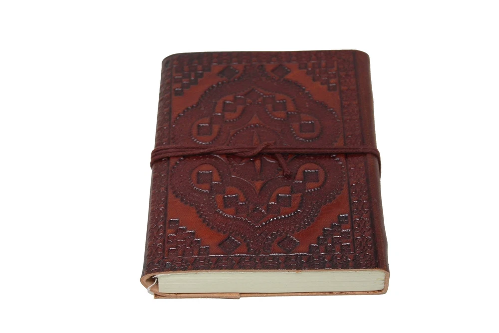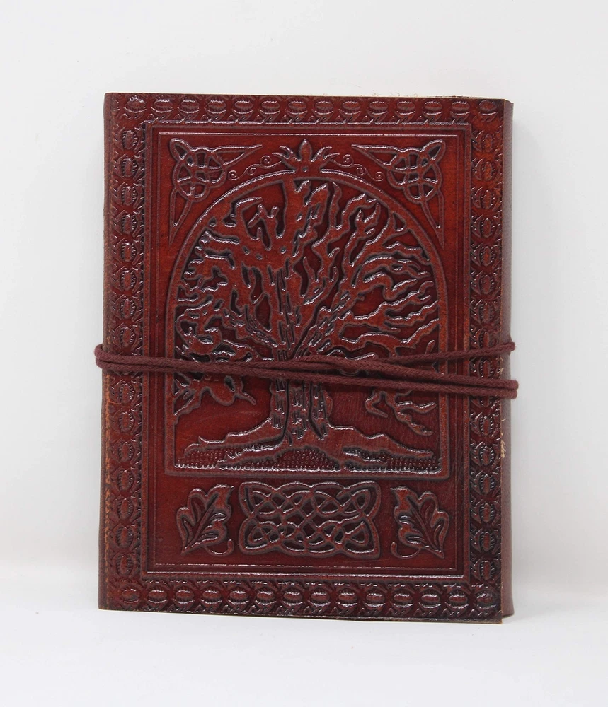 Wonderlist Handicrafts Leather Journal Vintage Bound Sketchbook Handmade Paper Notebook For Writing Book (TREE) Description Leather finish Diary with Engraved Designs center lock pattern . Diary is of size 7"x5".Top cover made of Leather with engraved design. Inner pages having 60 leaves (120 pages) made of most eco-friendly cotton rag 110 gsm handmade paper. Inner pages are un-ruled. Diary stitched with thread for more traditional look. Inner pages having good texture for writing and giving natural and eco-friendly feeling. Perfect for Gifting. Read more Features: Product Details: Publisher : Wonderlist Handicrafts Print length : 120 pages Item Weight : 1 pounds Dimensions : 5 x 2 x 7 inches Best Sellers Rank: #400,015 in Books (See Top 100 in Books) #1,220 in Personal Organizers #1,220 in Personal Organizers Customer Reviews: 5.0 5.0 out of 5 stars 3 ratings Handling We will ship all orders within 3 business day of payment. Delivery We Do Not Ship Outside of the Continental US. Return Policy All items qualify for returns within 30 days of receipt. Buyer is responsible for return shipping on any item that is not damaged. Feedback We take our reputation seriously, we buy and sell online, so we understand the value of trust. If you are unsatisfied with your order, please contact us and we will work with you to resolve it to your satisfaction.