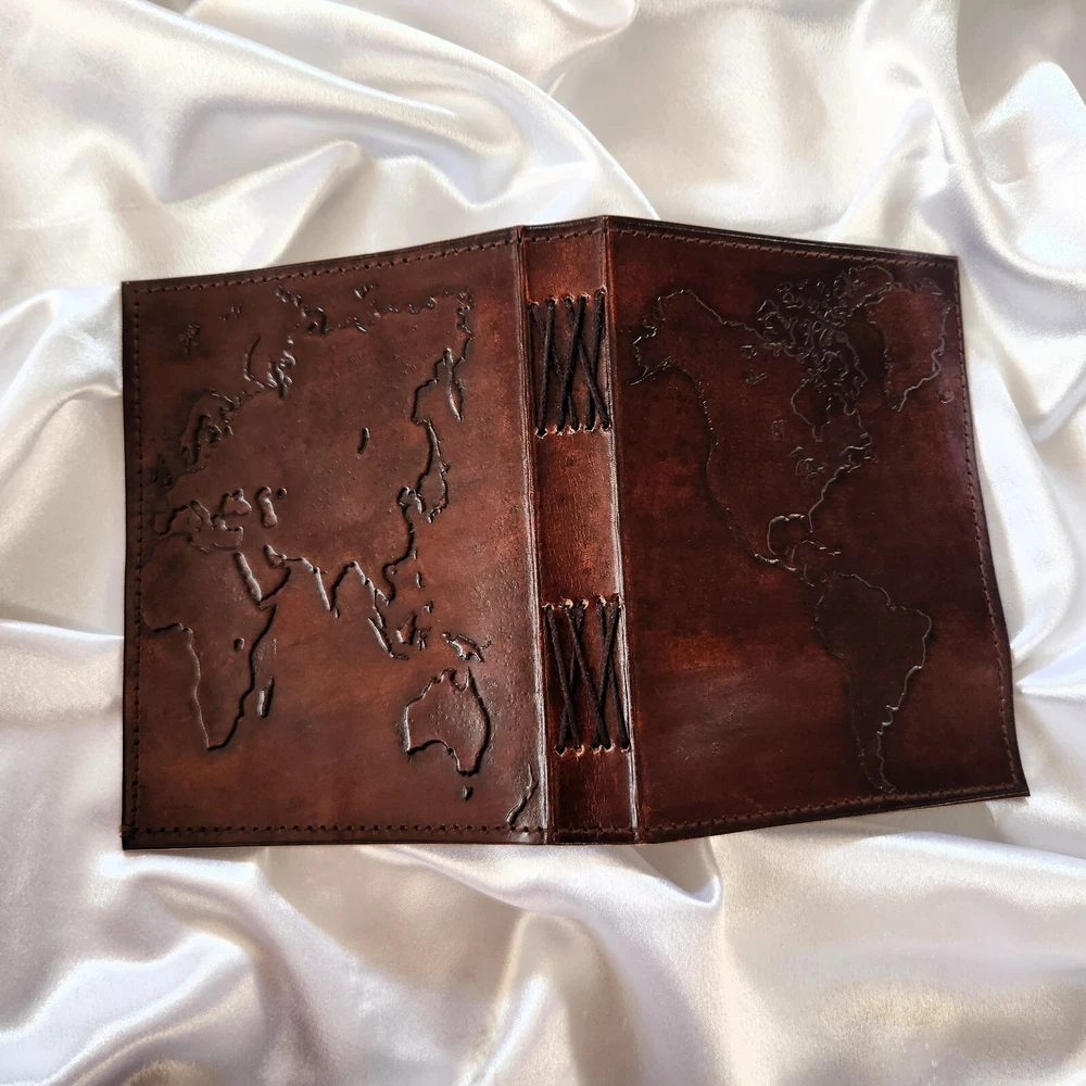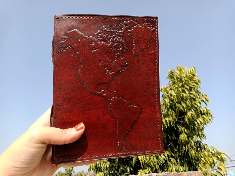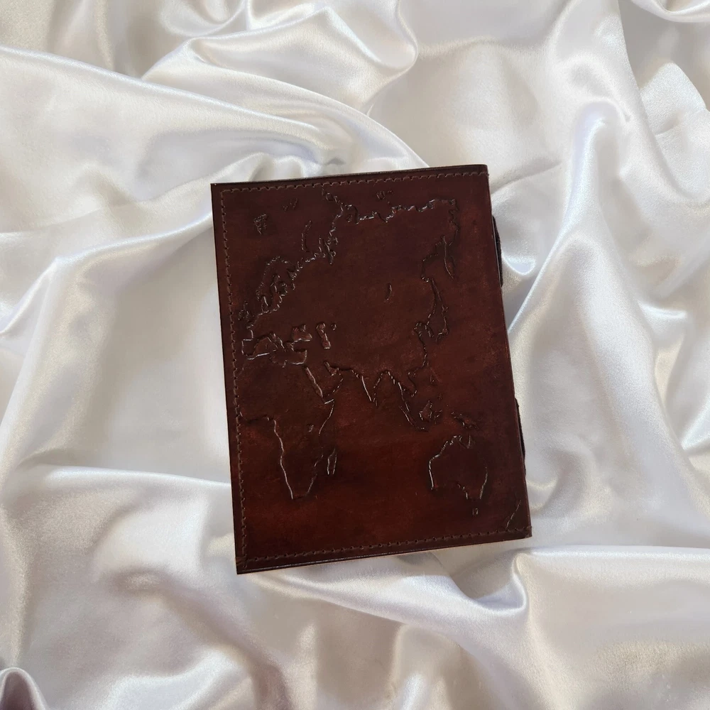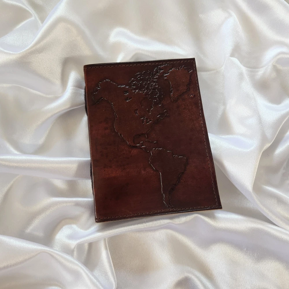 World Map Leather Journal, embossed leather Sketchbook, bound journal, Leather diary, leather notebook, Premium Journal, Vintage Journal. 1. This exquisite World Map Leather Journal is a must-have for any traveler or adventurer. The embossed leather cover features a beautifully detailed map of the world, adding a touch of sophistication to any collection. 2. The bound journal is perfect for sketching, writing, or jotting down notes on-the-go, making it a versatile and practical accessory for those who are always on the move. 3. Crafted from premium quality leather, this leather diary is not only durable but also ages beautifully over time, developing a unique patina that adds to its charm. 4. Whether you're a seasoned explorer or simply appreciate the art of journaling, this vintage-inspired leather notebook is sure to become a cherished companion on all your adventures.
