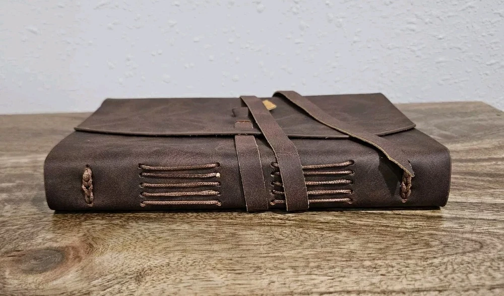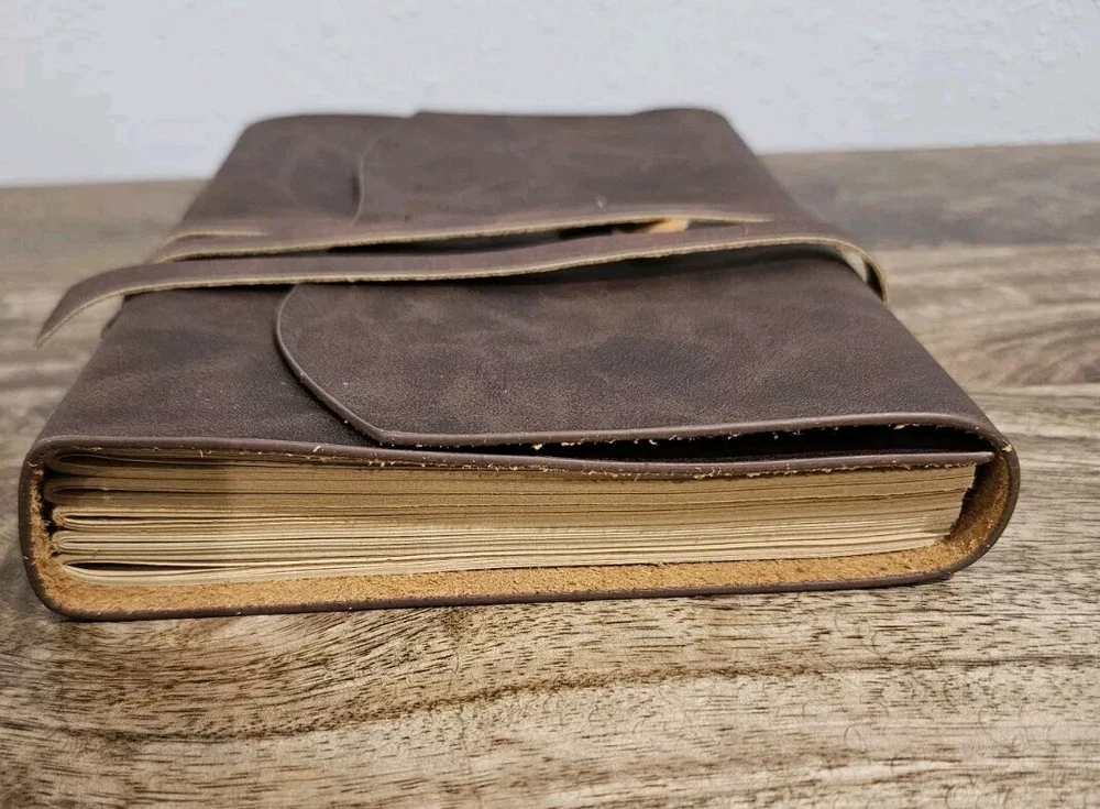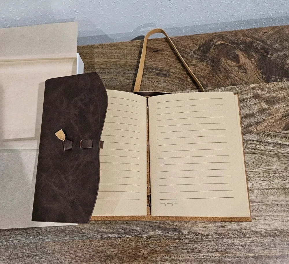 This vintage brown leather journal notebook is perfect for those who value high-quality materials and timeless design. The cover is made of supple leather, ensuring durability and longevity. The pages are blank, providing ample space for notes, sketches, or anything else that comes to mind. The journal is ideal for professionals, students, or anyone who wants to add a touch of sophistication to their everyday life. It's perfect for keeping track of schedules, meetings, and other important information. The journal is categorized under Business & Industrial, Office, Office Supplies, Calendars & Planners, and Blank Diaries & Journals. Get yours today and experience the beauty and functionality of this vintage brown leather journal notebook.