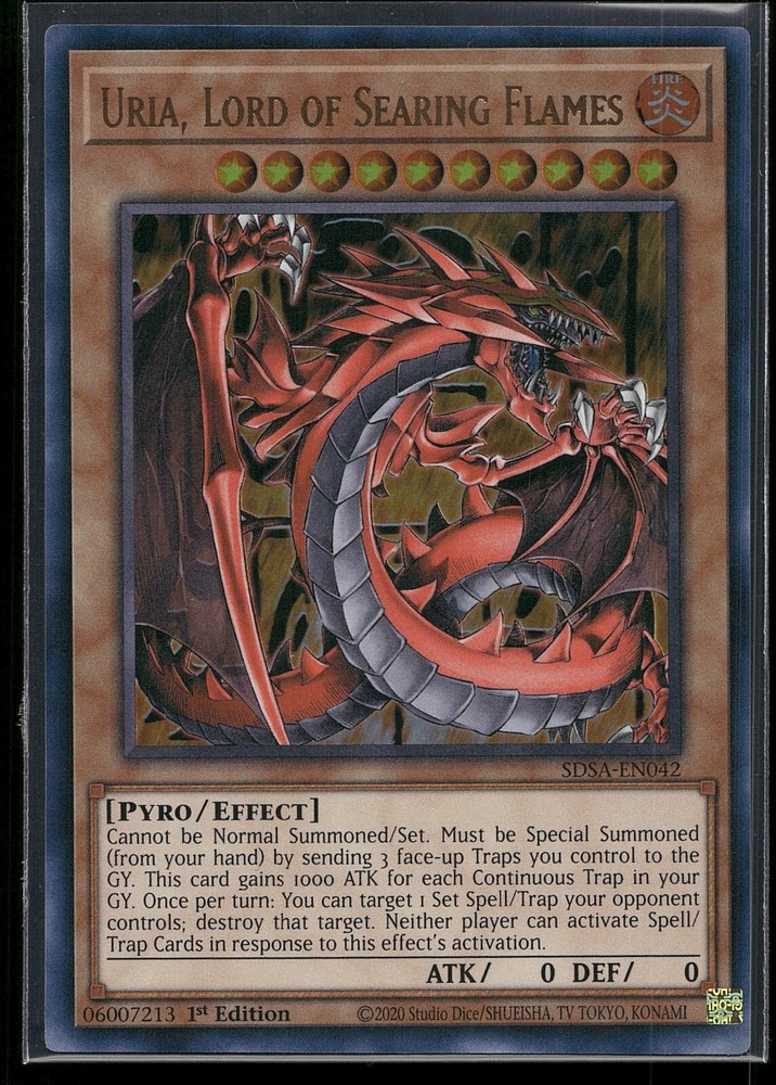 X2 2020 YuGiOh URIA, LORD OF SEARING FLAMES Sacred Beasts 1st Ed. UR NM. Condition is Ungraded. Shipped with USPS Ground Advantage....