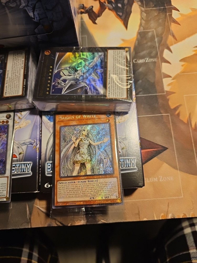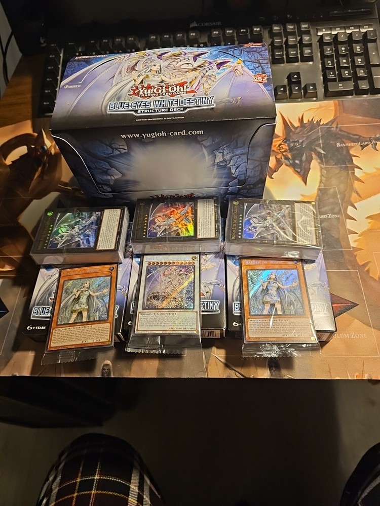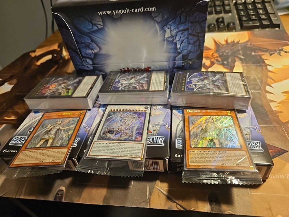 Unleash the power of the legendary Seto Kaiba with the Blue Eyes White Destiny deck, a must-have for any Yu-Gi-Oh! enthusiast. This set includes three open but sealed decks. Best of all, this purchase comes with 2 secret rare Maiden of White and a Secret Rare Wishes for Eyes of Blue. With cards dating back to the iconic 2024 release, this configuration offers a nostalgic trip to the early days of dueling. A structure deck that's both collectible and competitive. Dive into the strategic depths of the Yu-Gi-Oh! universe with this promotionally priced set, and claim victory with the timeless tactics of the Blue Eyes White Destiny.