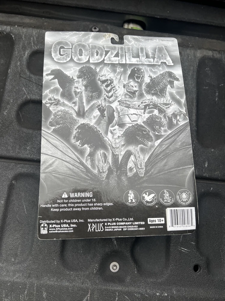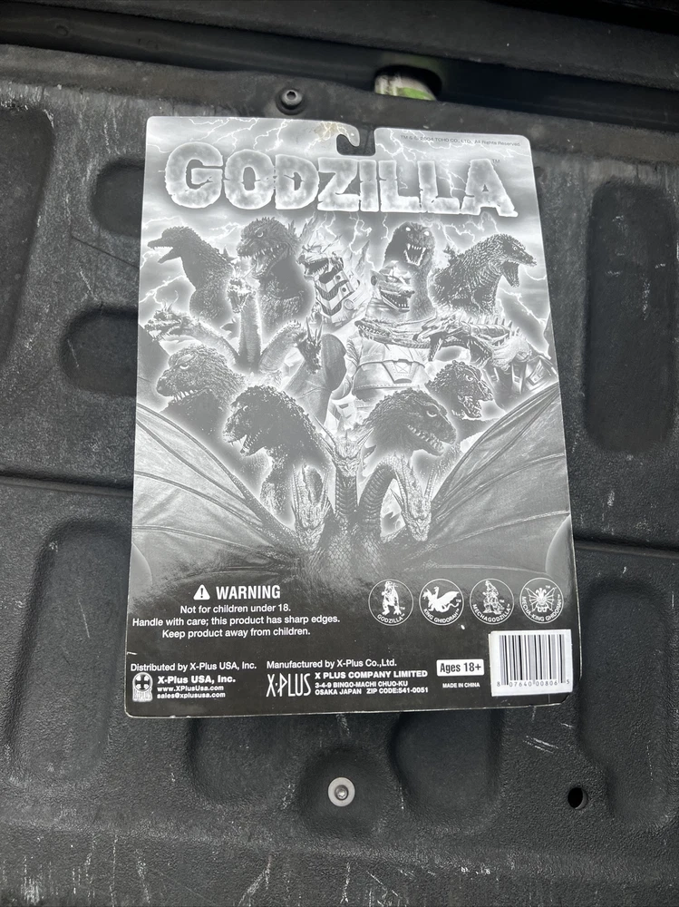 Brand new sealed on a card XPlus Godzilla figure c2004 Labeled Ghidorah - clearly a Godzilla figure Top left of bubble has a ding Sealed figure. Mint and unused. Lot CC Please let me know if you have any questions Capitol Salvage - Facebook and Instagram